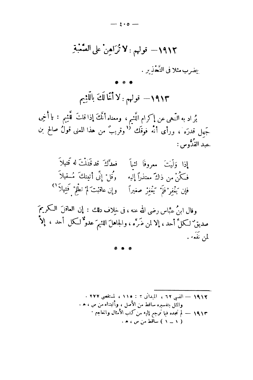 1913 - قَوْلهم لَا أَخا لَك باللئيم