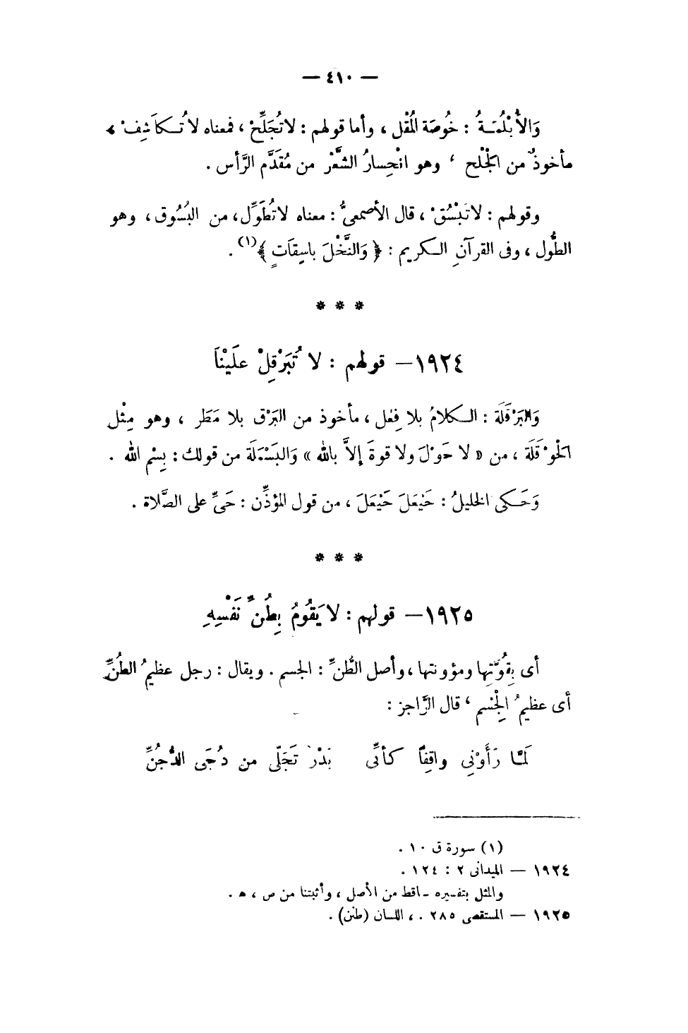 1925 - قَوْلهم لَا يقوم بطن نَفسه