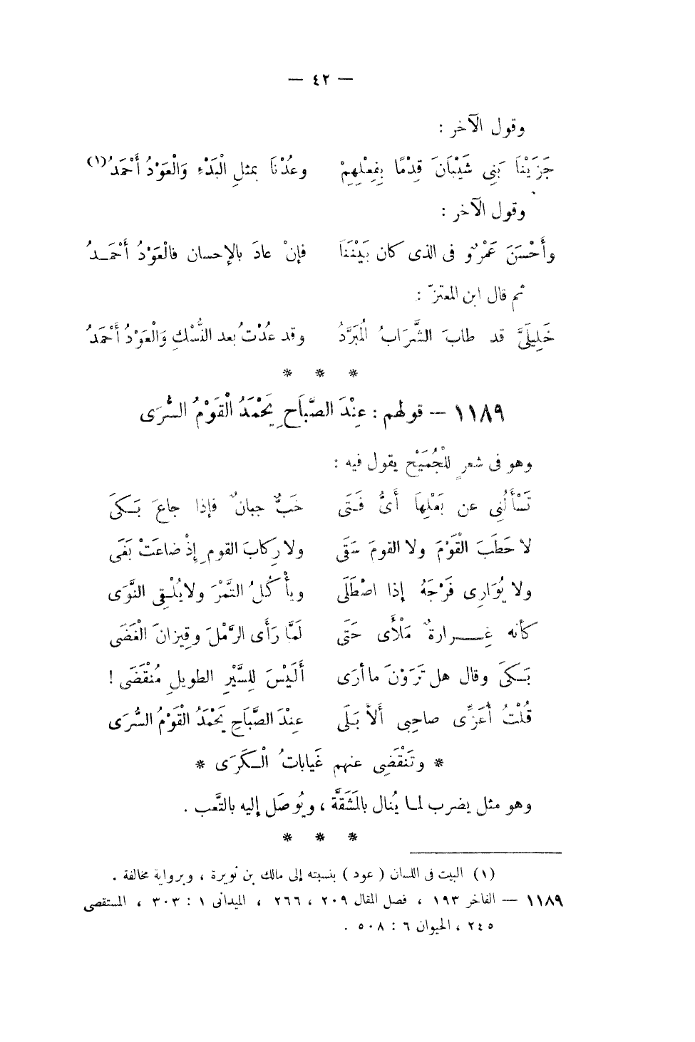 (جزينا بنى شَيبَان قدماً بفعلهم ... وعدنا بِمثل البدء وَالْعود أَحْمد)