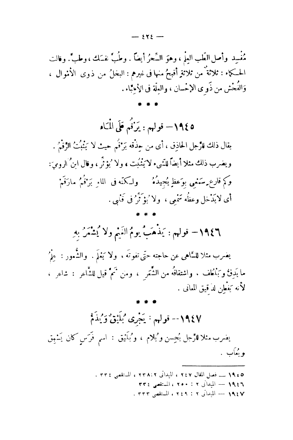 1947 - قَوْلهم يجرى بليقٌ ويذم