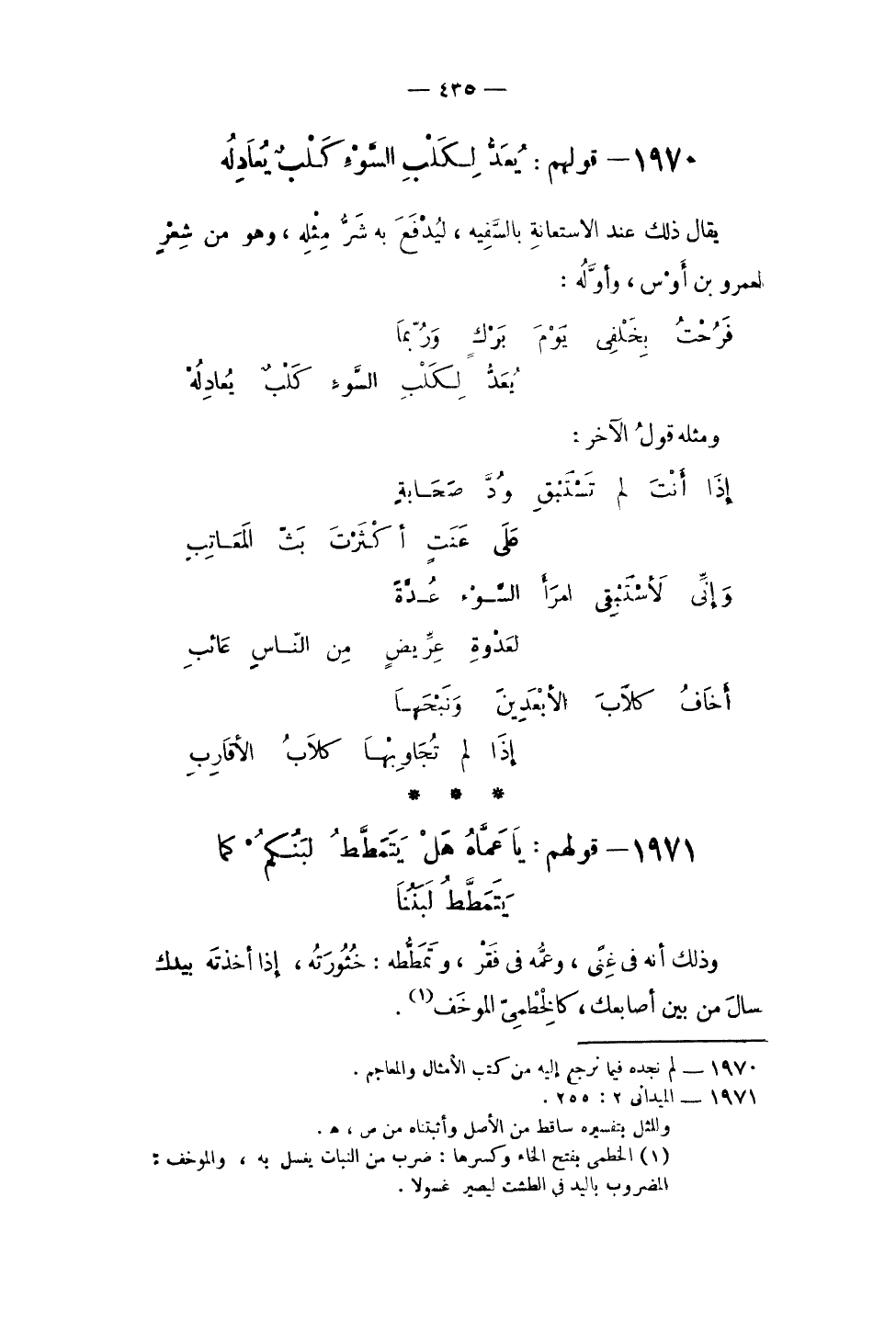 1971 - قَوْلهم يَا عماه هَل يتمطط لبنكم كَمَا يتمطط لبننا