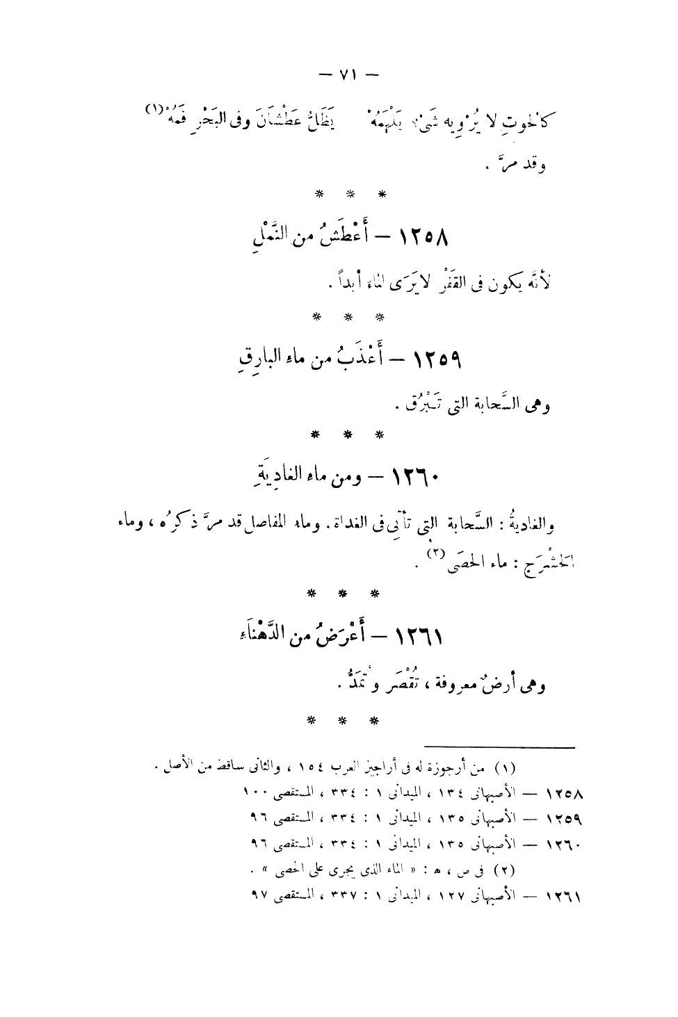 والغادية السحابة الَّتِي تَأتي فِي الْغَدَاة وَمَاء المفاصل قد مر ذكره وَمَاء الحشرج مَاء الْحَصَى