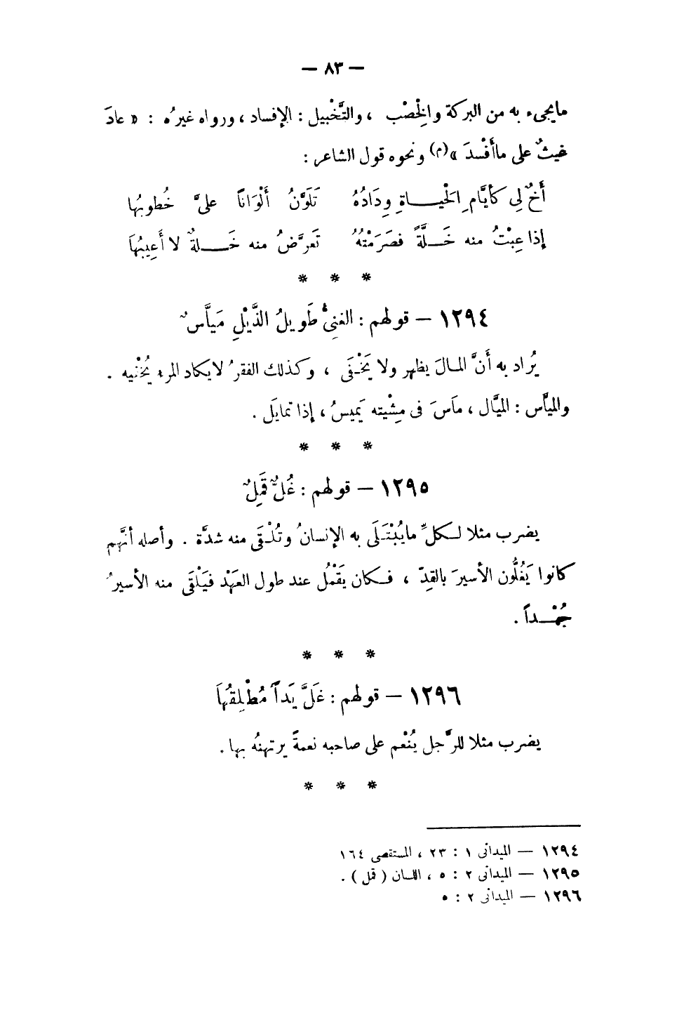 1296 - قَوْلهم غل يدا مُطلقهَا