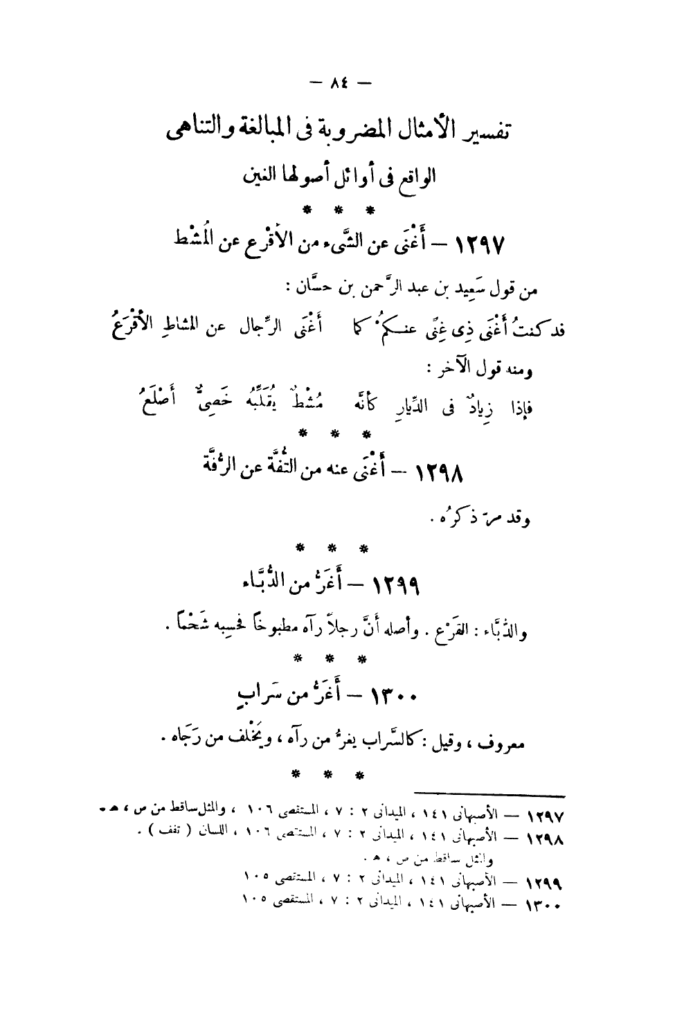 تَفْسِير الْأَمْثَال المضروبة فِي الْمُبَالغَة والتناهي الْوَاقِع فِي أَوَائِل أُصُولهَا الْغَيْن
