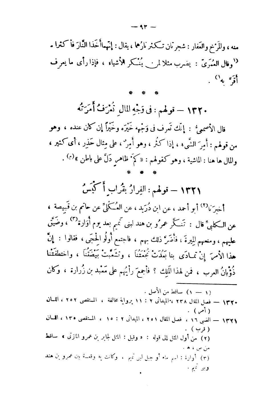 1320 - قَوْلهم فِي وَجه المَال تعرف أَمرته