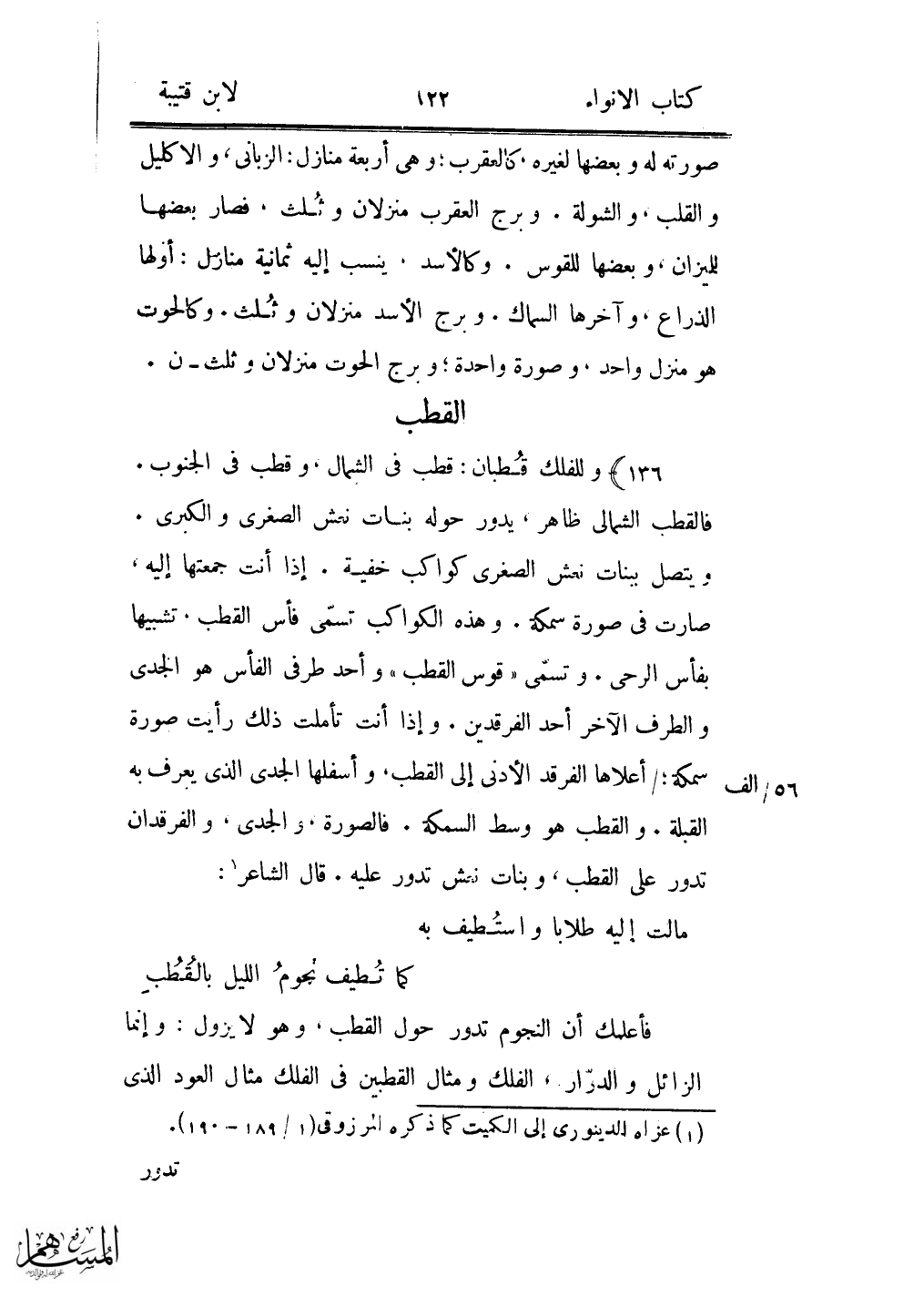 136) وللفلك قطبان: قطب فى الشمال، وقطب فى الجنوب.