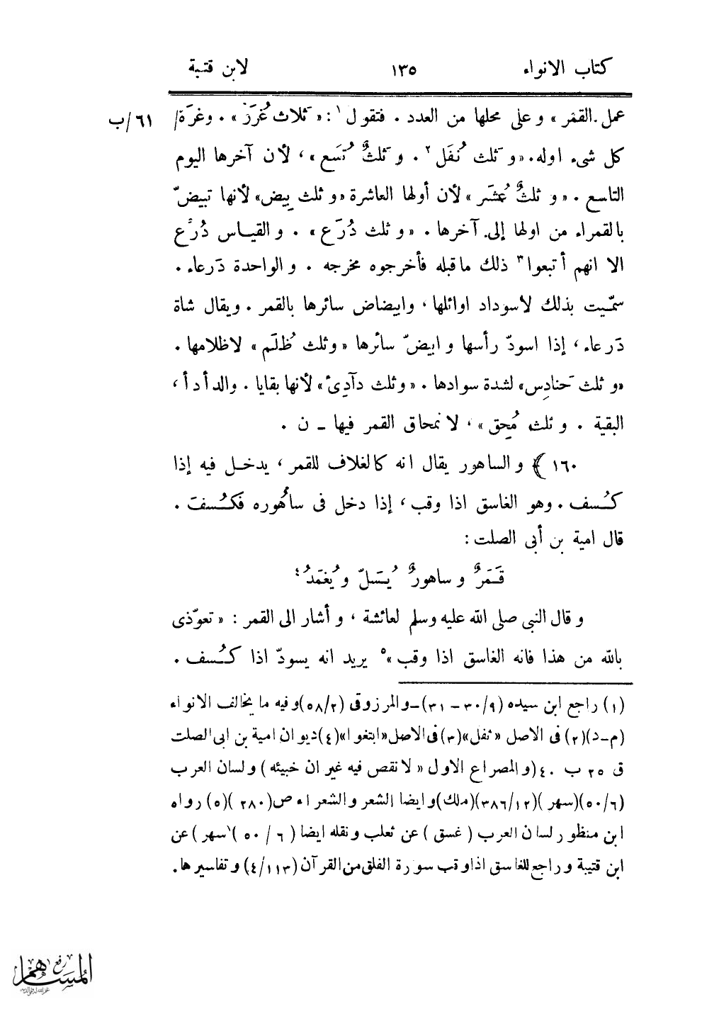 160) والساهور يقال انه كالغلاف للقمر، يدخل فيه إذا كسف. وهو الغاسق اذا وقب، إذا دخل فى ساهوره فكسف.