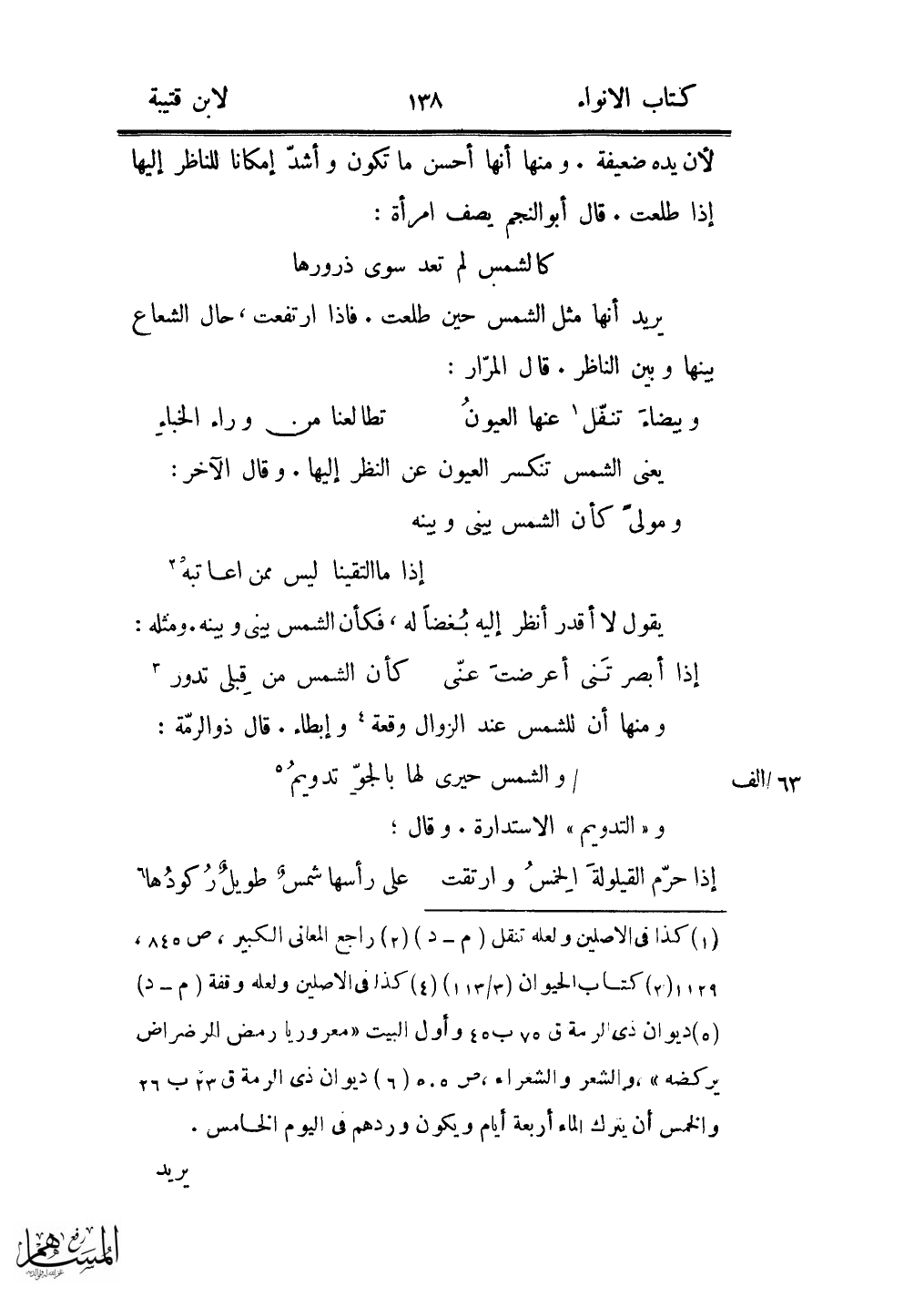 يعنى الشمس تنكسر العيون عن النظر إليها. وقال الآخر:
