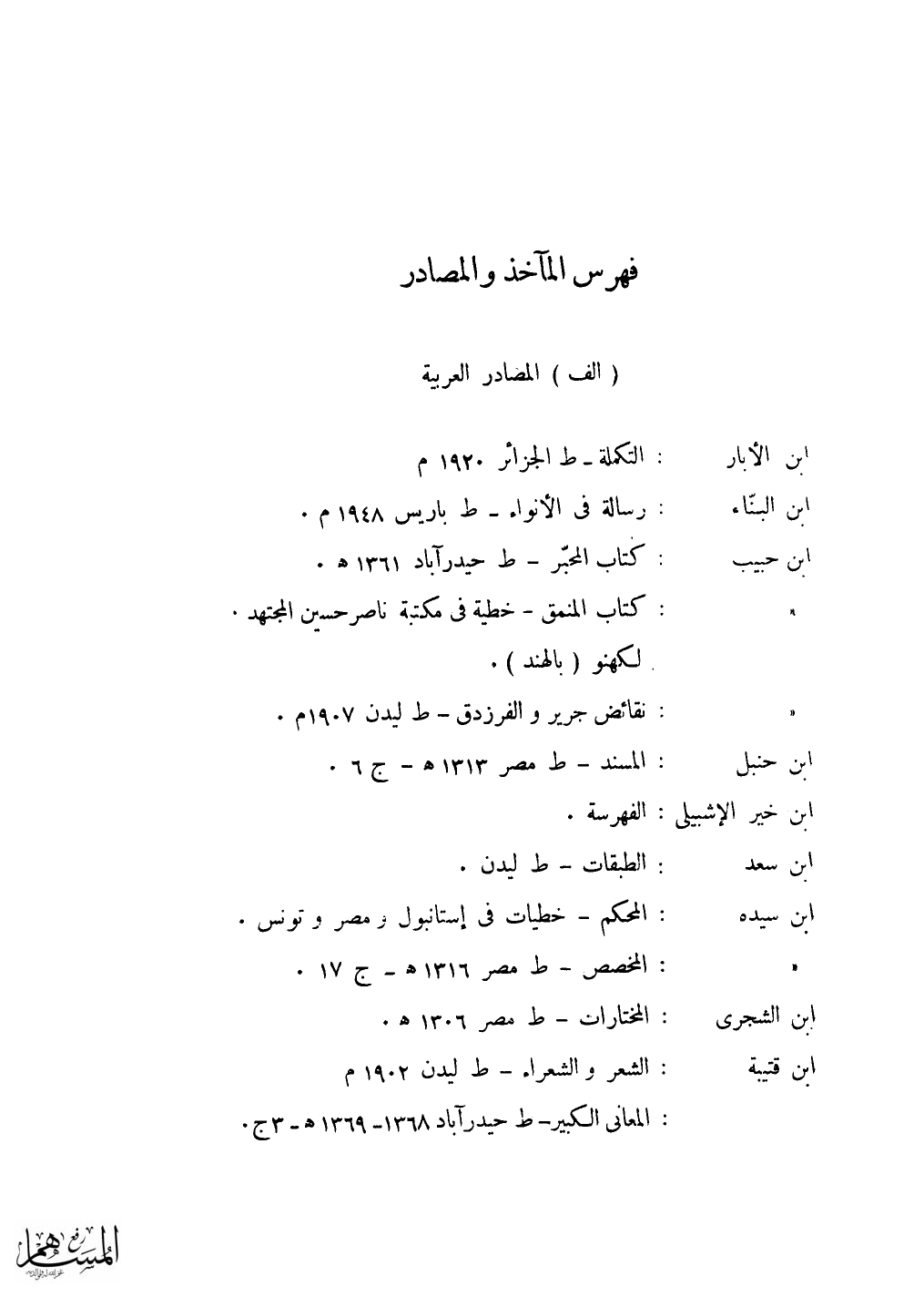 فهرس المآخذ والمصادر
