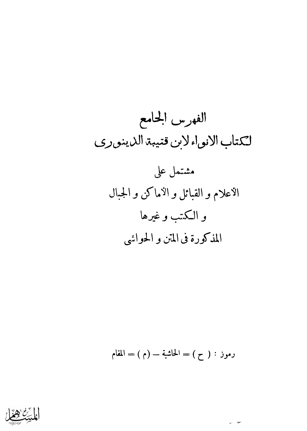 لكتاب الانواء لابن قتيبة الدينورى مشتمل على الأعلام والقبائل والأماكن والجبال والكتب وغيرها المذكورة فى المتن والحواشى