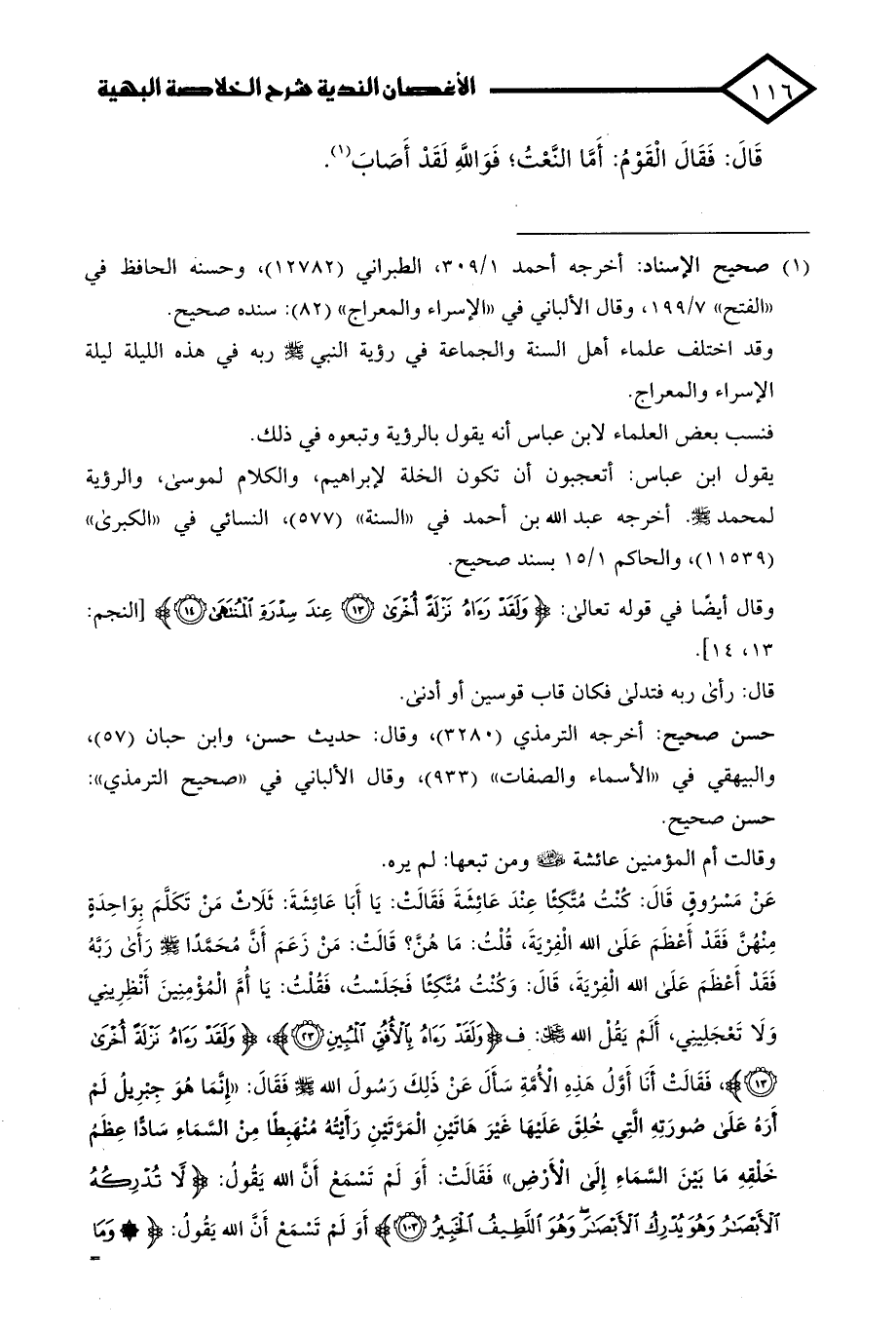 وقال أيضًا في قوله تعالى: {وَلَقَدْ رَآهُ نَزْلَةً أُخْرَى (13) عِنْدَ سِدْرَةِ الْمُنْتَهَى (14)} [النجم: 13، 14].