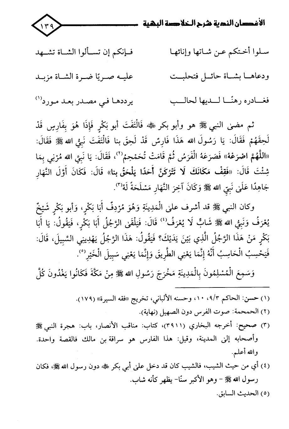 (¬3) صحيح: أخرجه البخاري (3911)، كتاب: مناقب الأنصار، باب: هجرة النبي - صلى الله عليه وسلم - وأصحابه إلى المدينة، وقيل: هذا الفارس هو سراقة بن مالك فالقصة واحدة. والله أعلم.