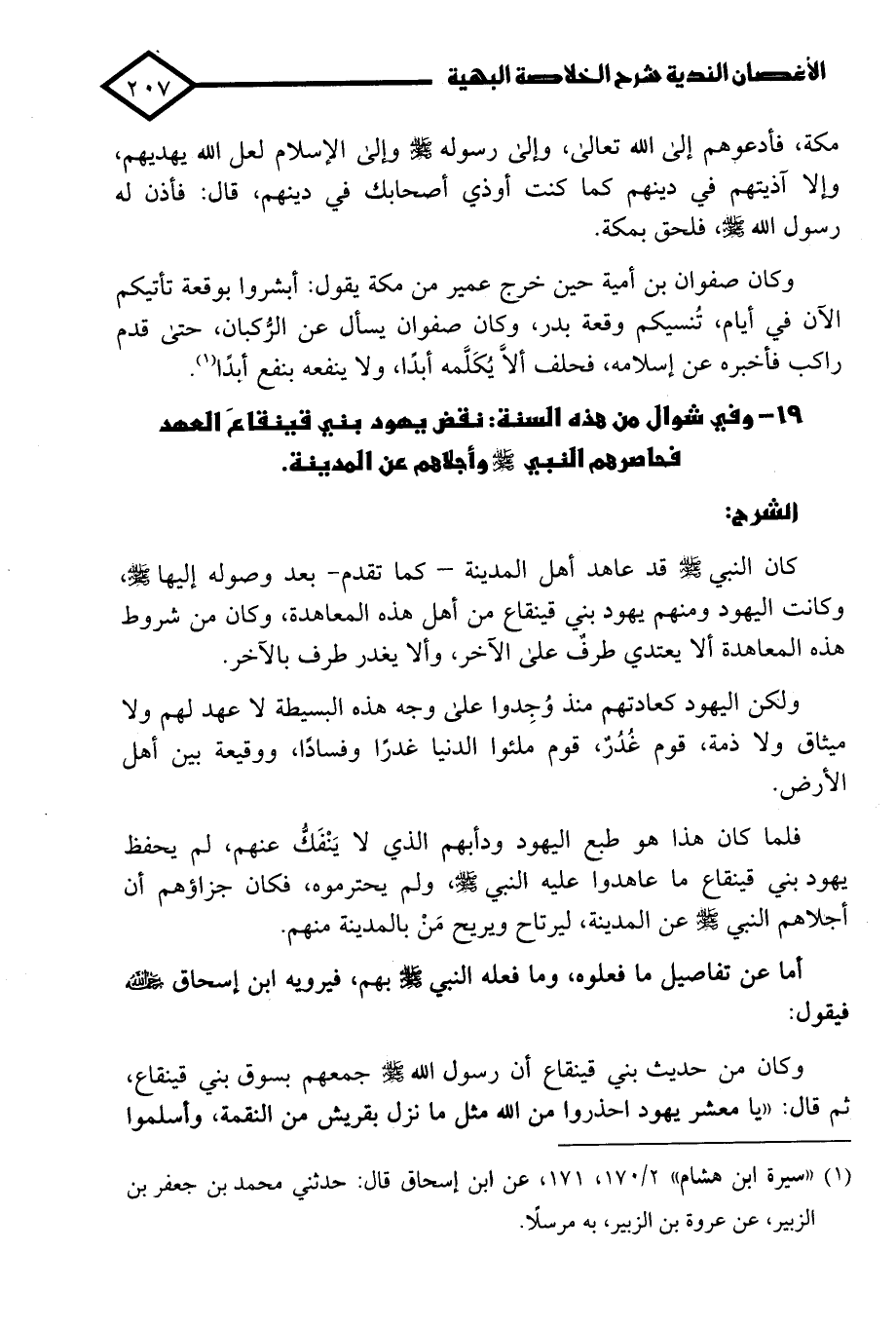 19 - وفي شوال من هذه السنة: نقض يهود بني قينقاع العهد فحاصرهم النبي - صلى الله عليه وسلم - وأجلاهم عن المدينه.