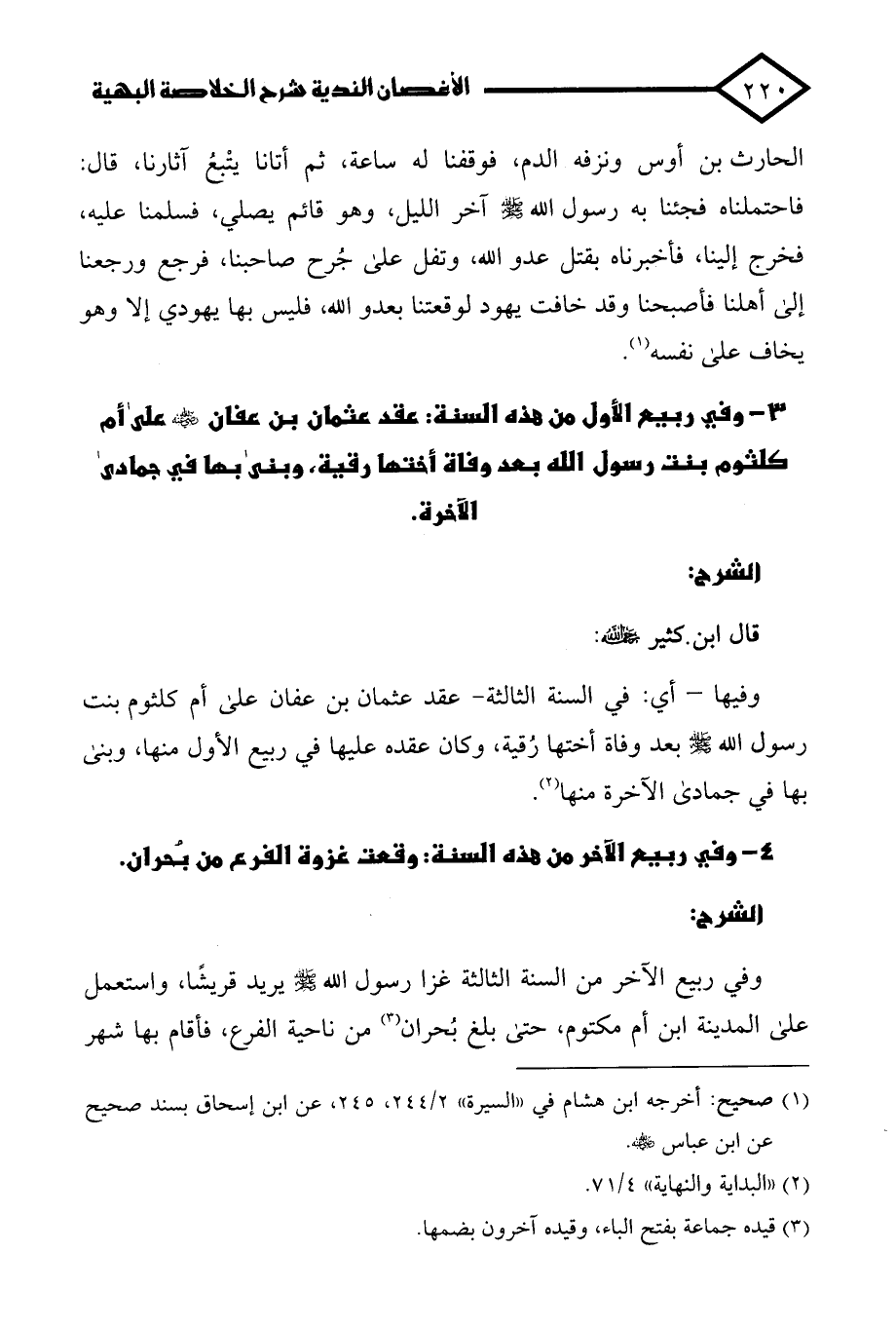 كتاب الأغصان الندية شرح الخلاصة البهية بترتيب أحداث السيرة النبوية