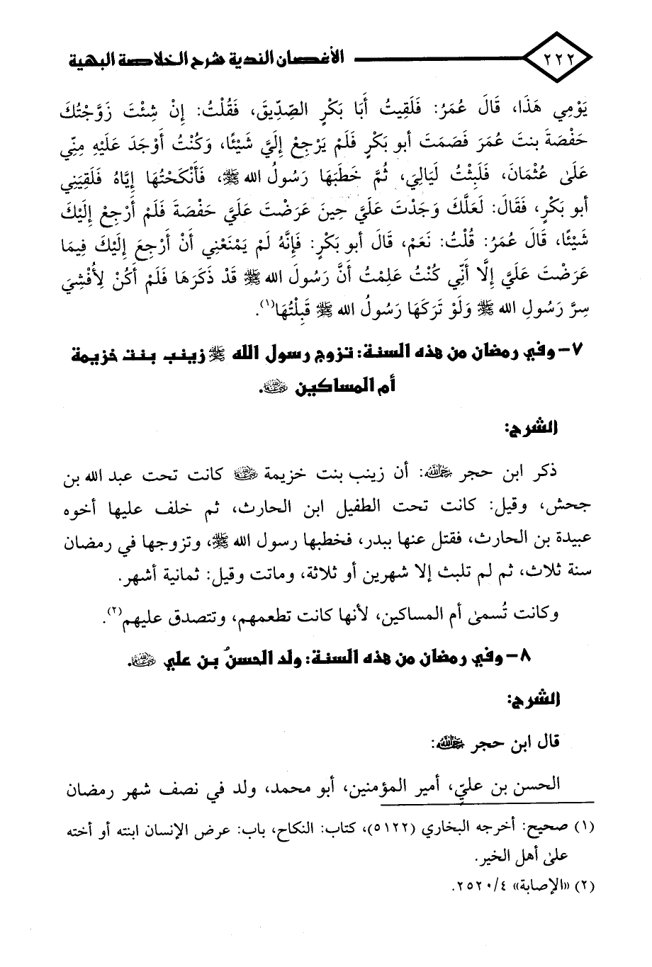 كتاب الأغصان الندية شرح الخلاصة البهية بترتيب أحداث السيرة النبوية