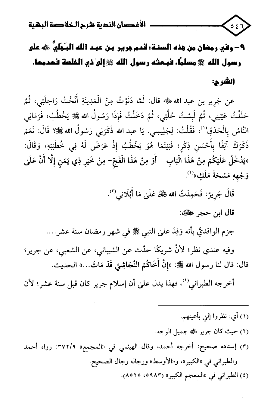 (¬2) حيث كان جرير - رضي الله عنه - جميل الوجه.