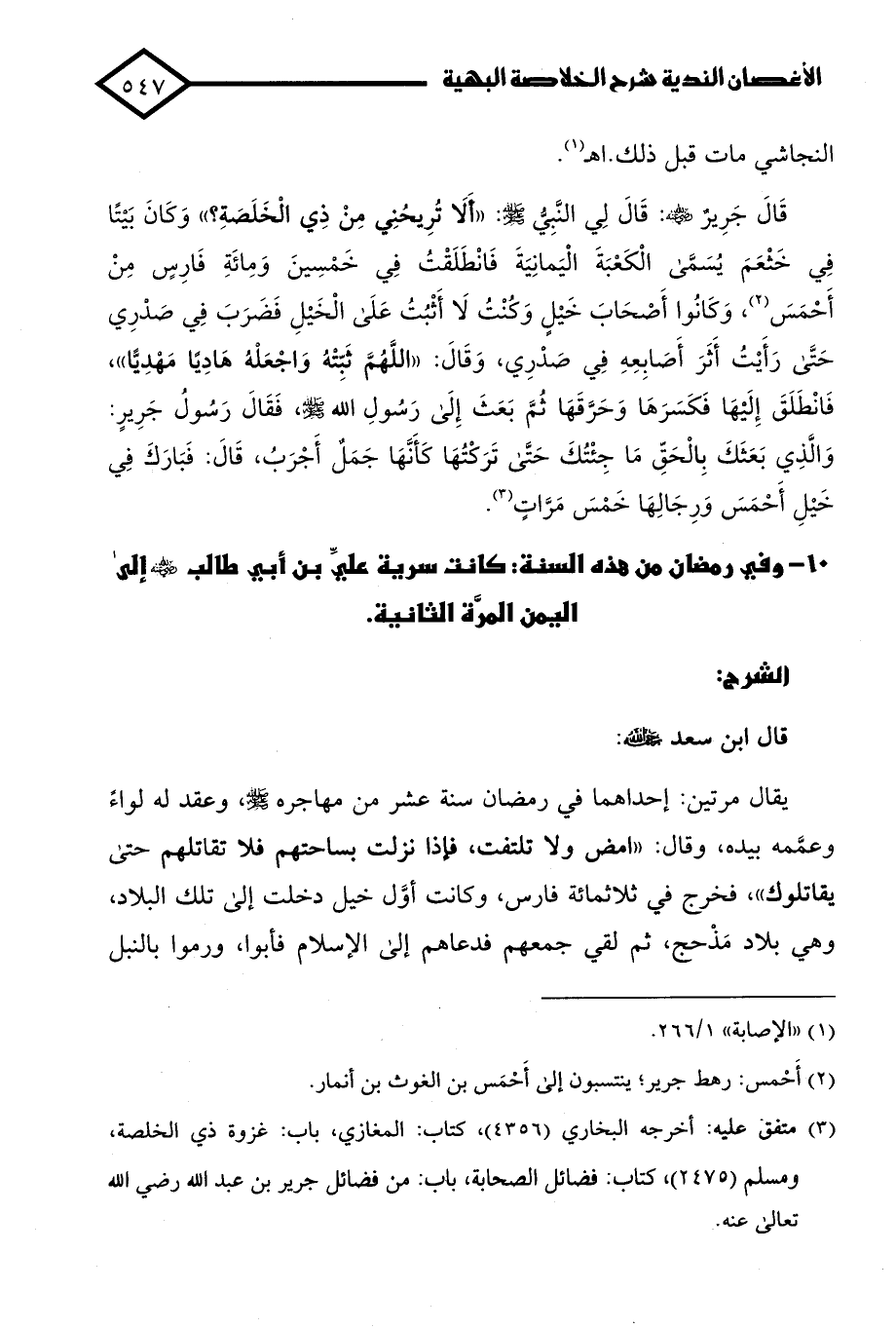 (¬3) متفق عليه: أخرجه البخاري (4356)، كتاب: المغازي، باب: غزوة ذي الخلصة، ومسلم (2475)، كتاب: فضائل الصحابة، باب: من فضائل جرير بن عبد الله رضي الله تعالى عنه.