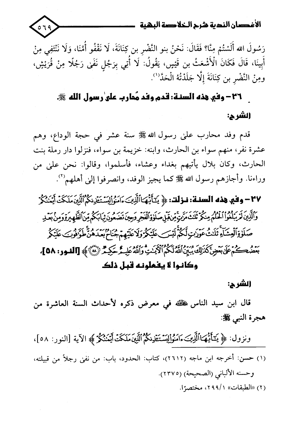 كتاب الأغصان الندية شرح الخلاصة البهية بترتيب أحداث السيرة النبوية