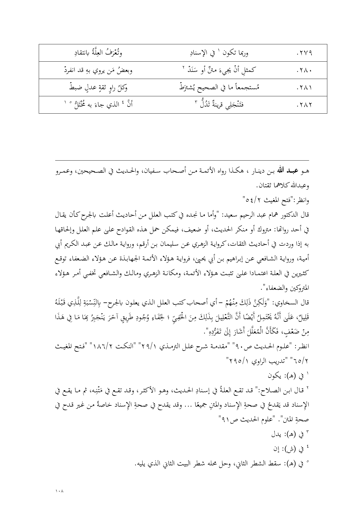 279 - وربما تكون (¬1) في الإسنادِ ... وتُعْرَفُ العِلَّةُ بانتقاد