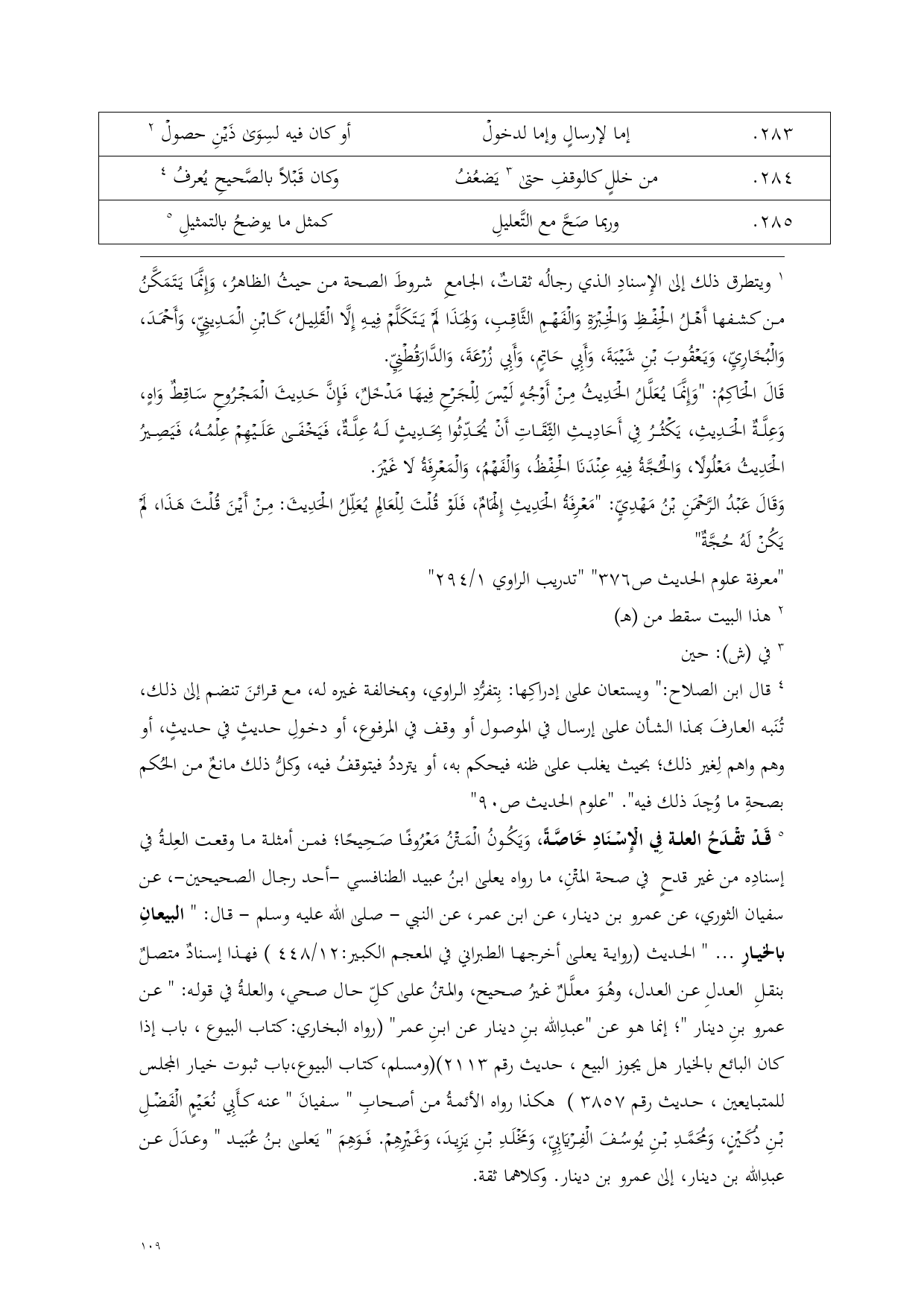 284 - من خللٍ كالوقفِ حتى (¬2) يَضعُفُ ... وكان قَبْلاً بالصَّحيحِ يُعرفُ (¬3)