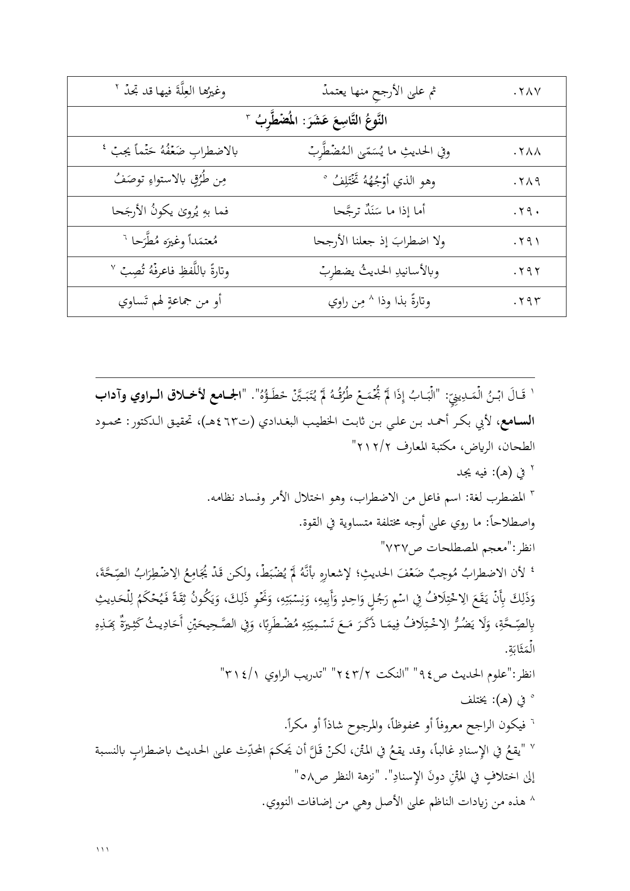288 - وفي الحديثِ ما يُسَمّى المُضْطَّرِبْ ... بالاضطرابِ ضَعْفُهُ حَتْماً يجبْ (¬3)