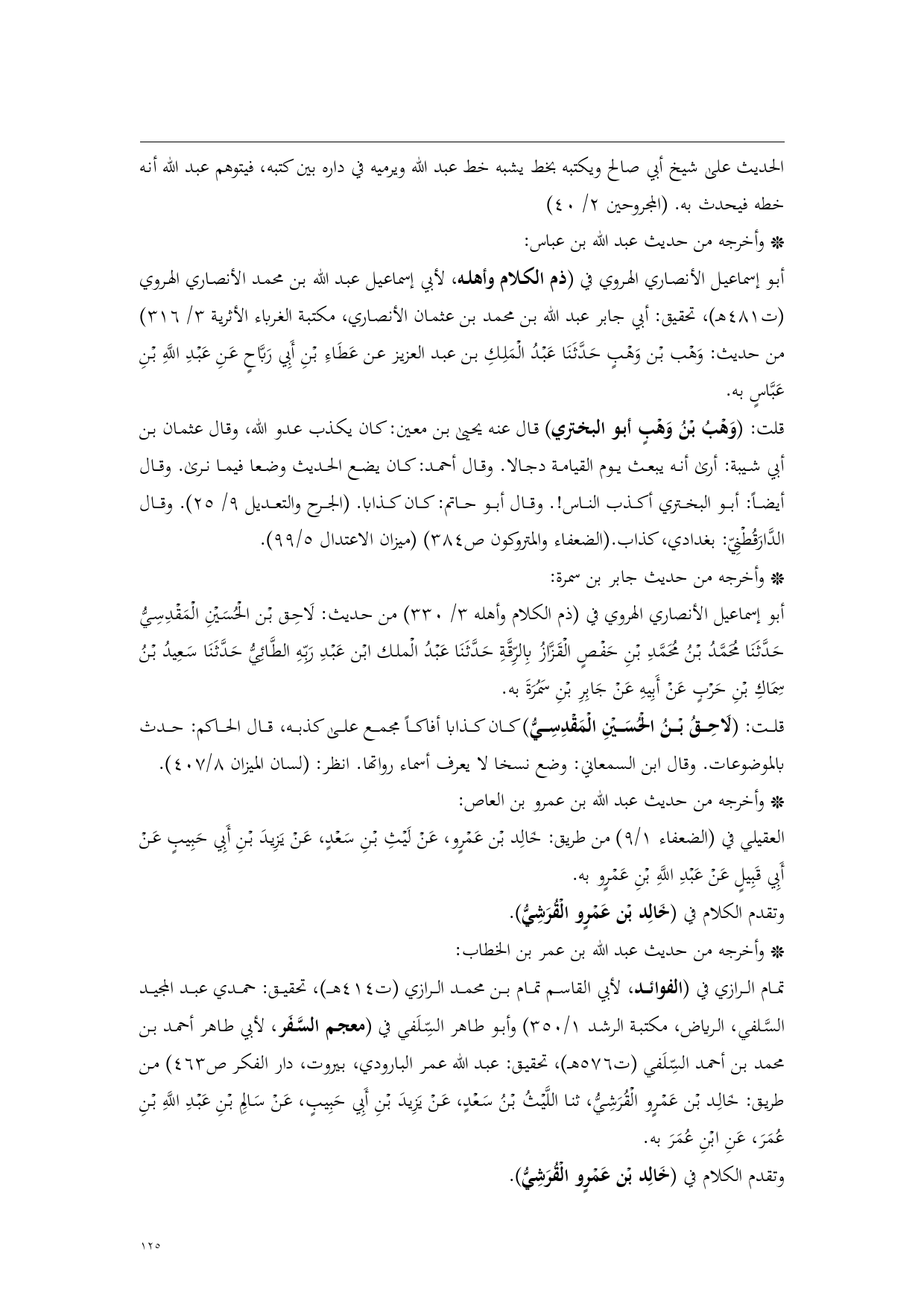 أبو إسماعيل الأنصاري الهروي في (ذم الكلام وأهله، لأبي إسماعيل عبد الله بن محمد الأنصاري الهروي (ت 481 هـ)، تحقيق: أبي جابر عبد الله بن محمد بن عثمان الأنصاري، مكتبة الغرباء الأثرية 3/ 316) من حديث: وَهْب بْن وَهْبٍ حَدَّثَنَا عَبْدُ الْمَلِكِ بن عبد العزيز عن عَطَاءِ بْنِ أَبِي رَبَّاحٍ عَنِ عَبْدِ اللَّهِ بْنِ عَبَّاسٍ به.