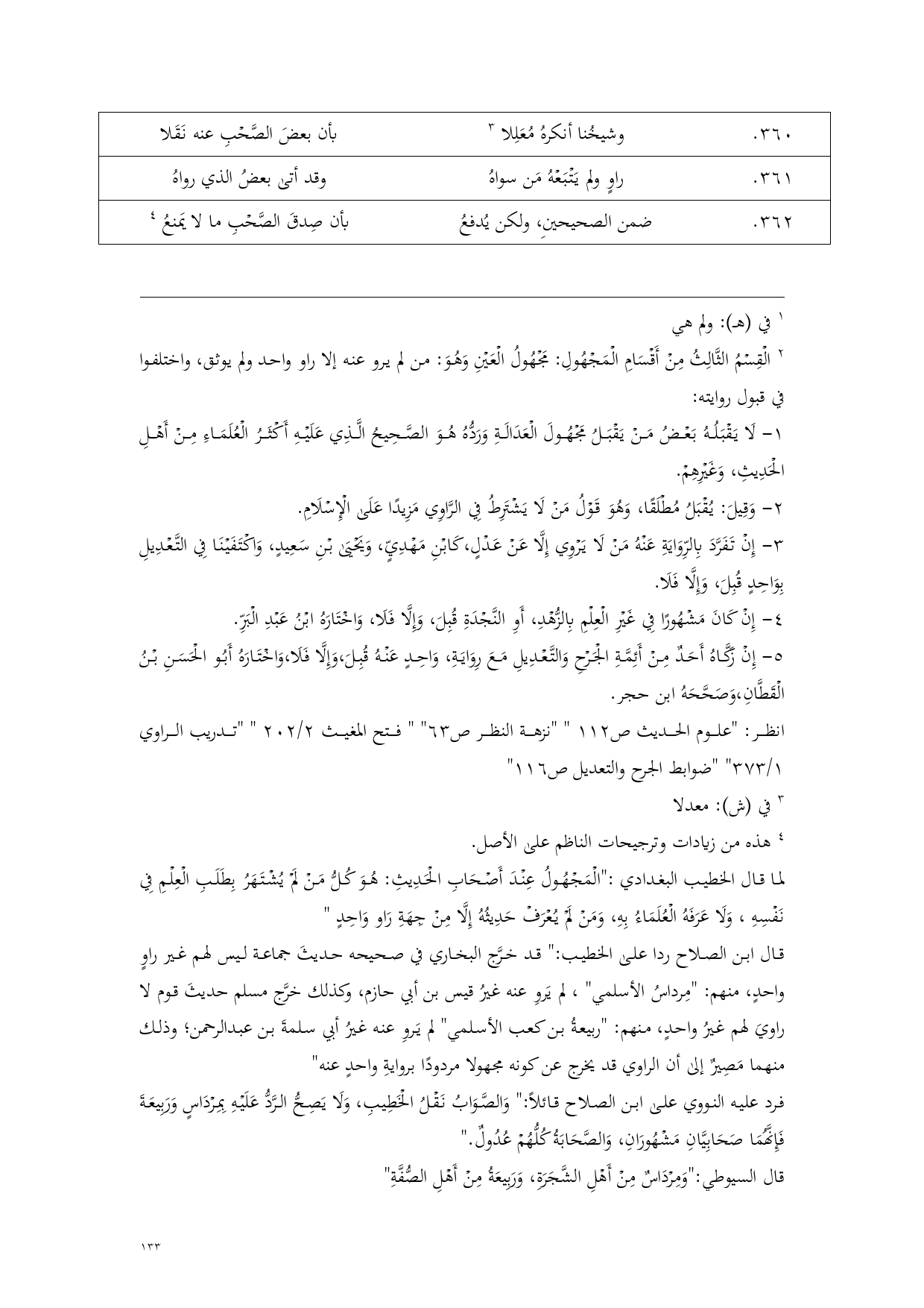 قال ابن الصلاح ردا على الخطيب: " قد خرَّج البخاري في صحيحه حديثَ جماعة ليس لهم غير راوٍ واحدٍ، منهم: "مِرداسُ الأسلمي"، لم يَروِ عنه غيرُ قيس بن أبي حازم، وكذلك خرَّج مسلم حديثَ قوم لا راويَ لهم غيرُ واحدٍ، منهم: "ربيعةُ بن كعب الأسلمي" لم يَروِ عنه غيرُ أبي سلمةَ بن عبدالرحمن؛ وذلك منهما مَصِيرٌ إلى أن الراوي قد يخرج عن كونه مجهولا مردودًا بروايةِ واحدٍ عنه"