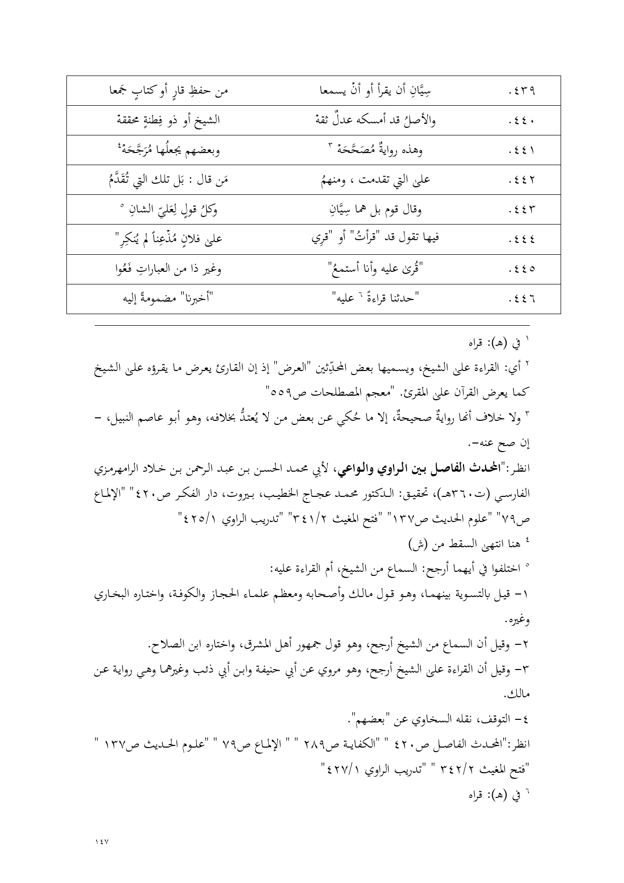 انظر: "المحدث الفاصل بين الراوي والواعي، لأبي محمد الحسن بن عبد الرحمن بن خلاد الرامهرمزي الفارسي (ت 360 هـ)، تحقيق: الدكتور محمد عجاج الخطيب، بيروت، دار الفكر ص 420" "الإلماع ص 79" "علوم الحديث ص 137" "فتح المغيث 2/ 341" "تدريب الراوي 1/ 425"