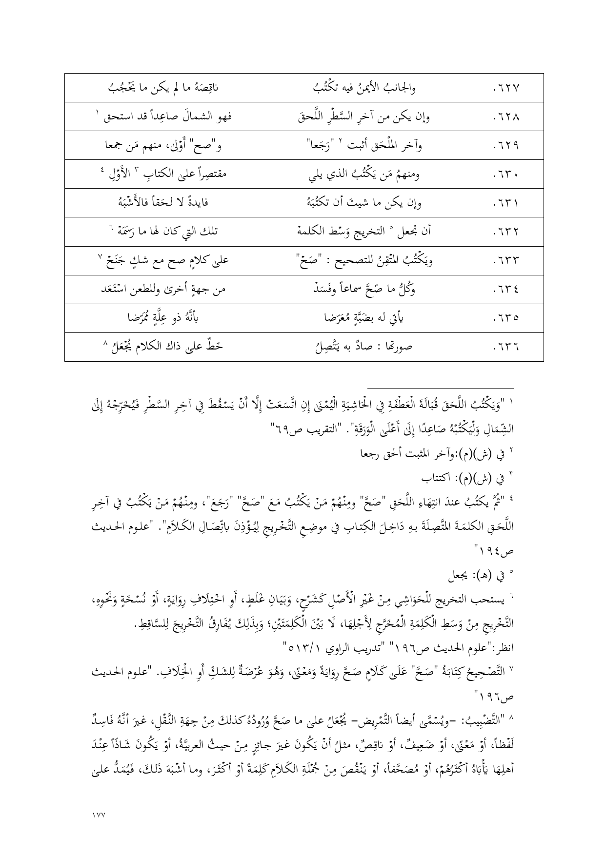 (¬1) "وَيَكْتُبُ اللَّحَقَ قُبَالَةَ الْعَطْفَةِ فِي الْحَاشِيَةِ الْيُمْنَى إِنِ اتَّسَعَتْ إِلَّا أَنْ يَسْقُطَ فِي آخِرِ السَّطْرِ فَيُخَرِّجْهُ إِلَى الشِّمَالِ وَلْيَكْتُبْهُ صَاعِدًا إِلَى أَعْلَى الْوَرَقَةِ". "التقريب ص 69"