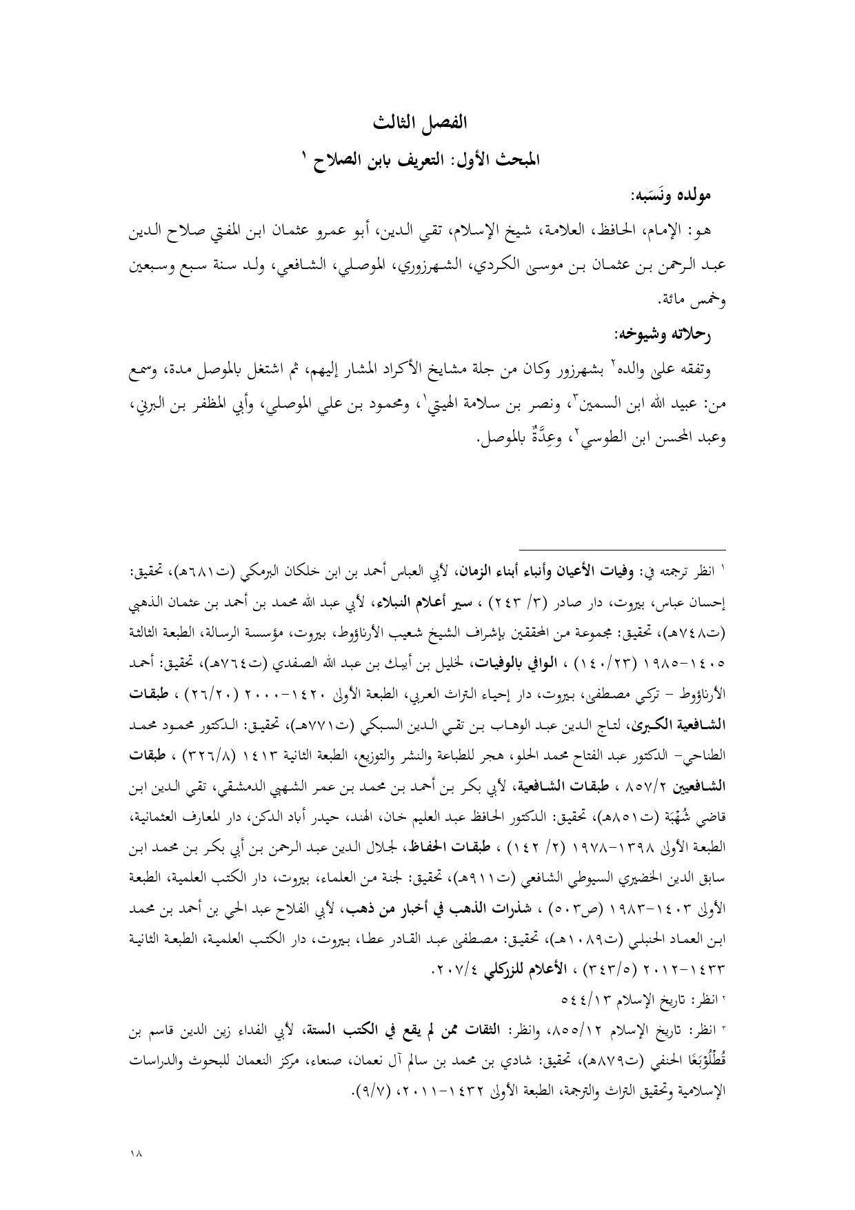 المبحث الأول: التعريف بابن الصلاح (¬1)