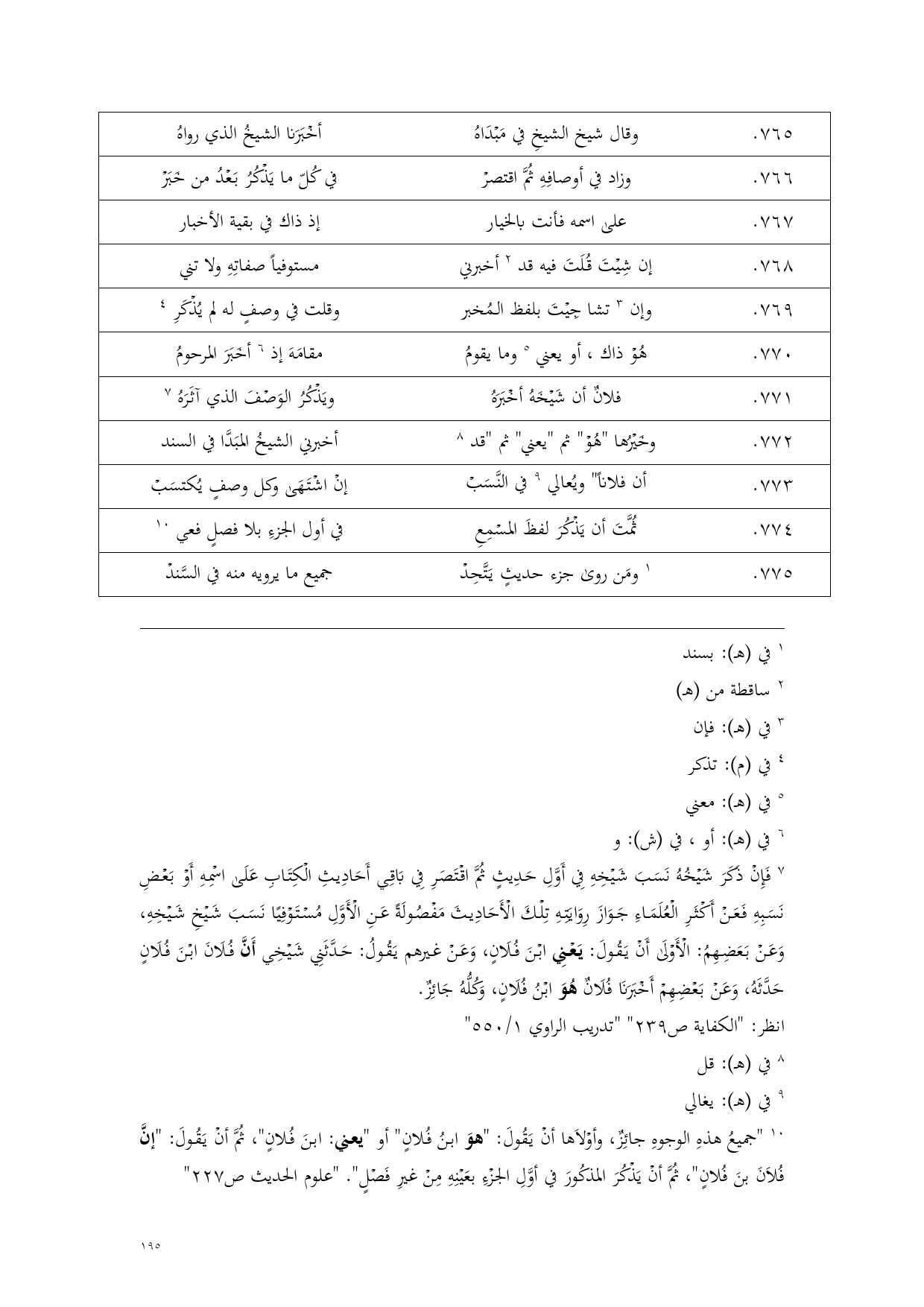 771 - فلانٌ أن شَيْخَهُ أخْبَرَهُ ... ويَذْكُرُ الوَصْفَ الذي آثَرَهُ (¬6)