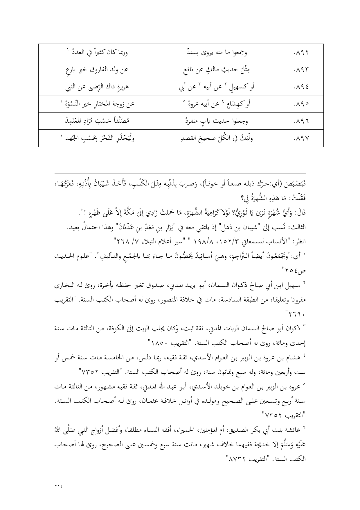 895 - أو كهِشَامٍ (¬4) عن أبيه عروهْ (¬5) ... عن زوجةِ المختارِ خير النّسْوَهْ (¬6)