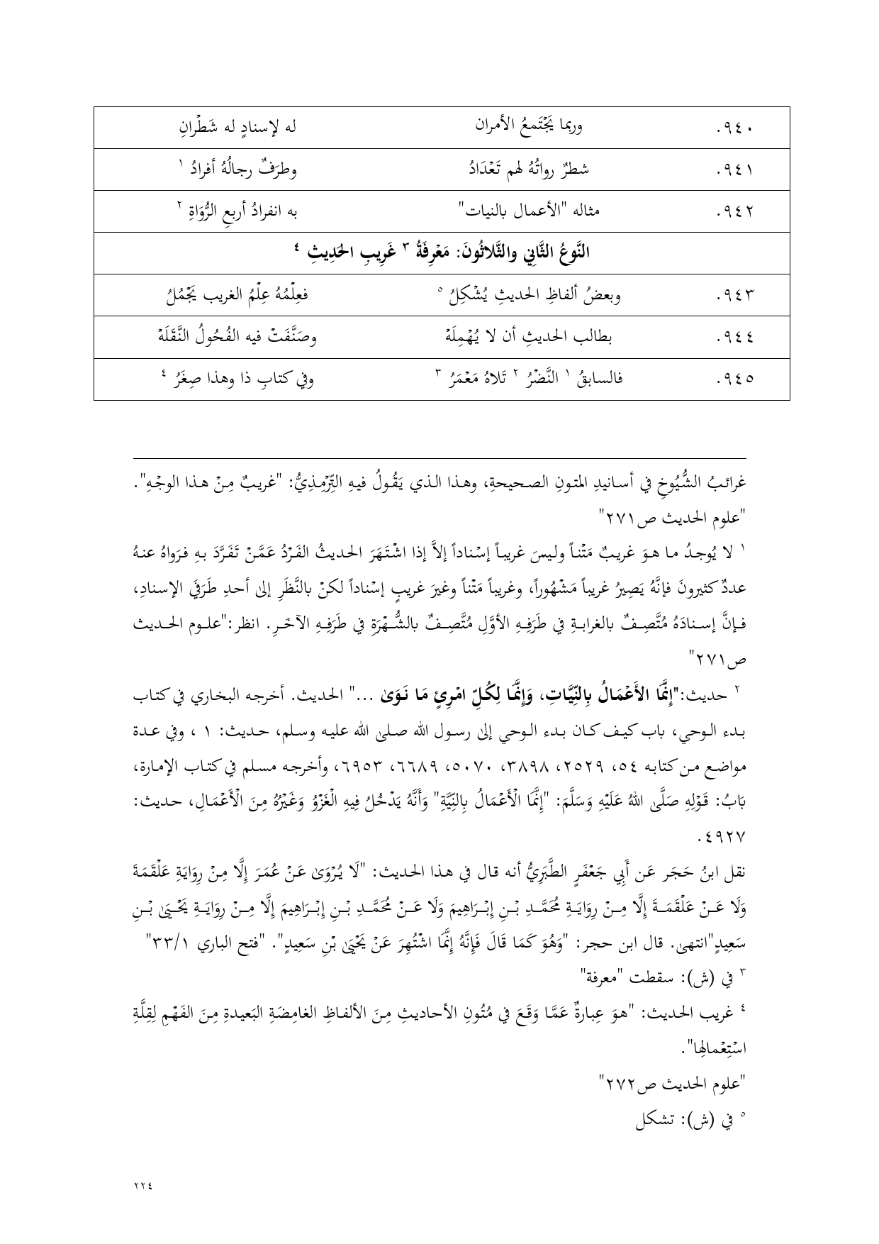 942 - مثاله "الأعمال بالنيات" ... به انفرادُ أربعِ الرُّوَاةِ (¬2)