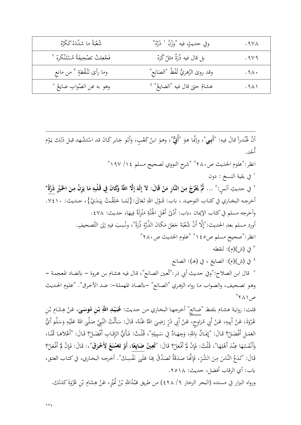 أورد مسلم بعد الحديث: "إِلَّا أَنَّ شُعْبَةَ جَعَلَ مَكَانَ الذَّرَّةِ ذُرَةً"، ونُسِبَ فيهِ إلى التَّصحيفِ.