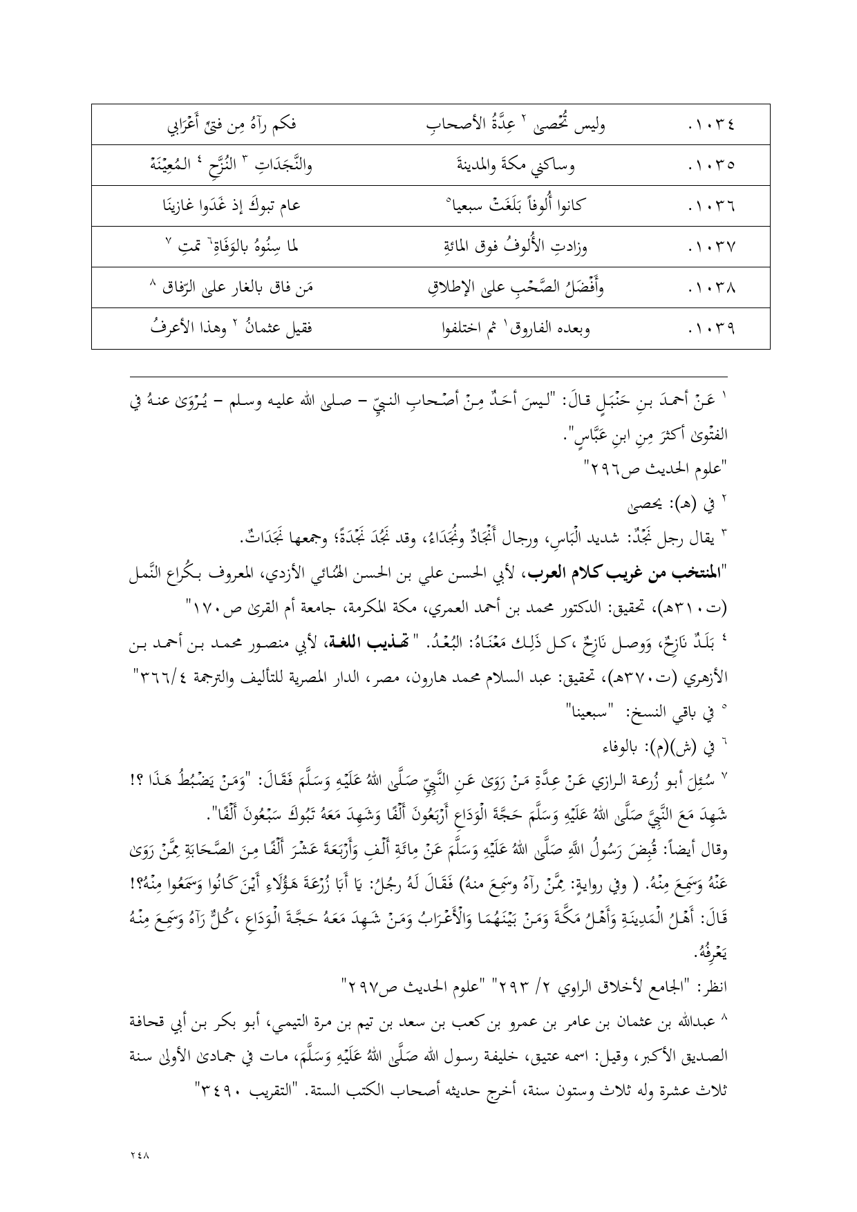 1034 - وليس تُحْصى (¬1) عِدَّةُ الأصحابِ ... فكم رآهُ مِن فتىً أَعْرَابي