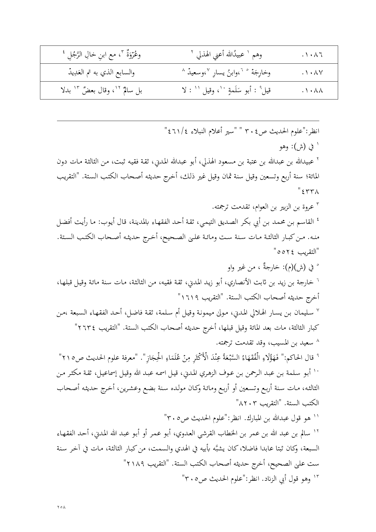 (¬9) قال الحاكم: " فَهَؤُلَاءِ الْفُقَهَاءُ السَّبْعَةُ عِنْدَ الْأَكْثَرِ مِنْ عُلَمَاءِ الْحِجَازِ". "معرفة علوم الحديث ص 215"
