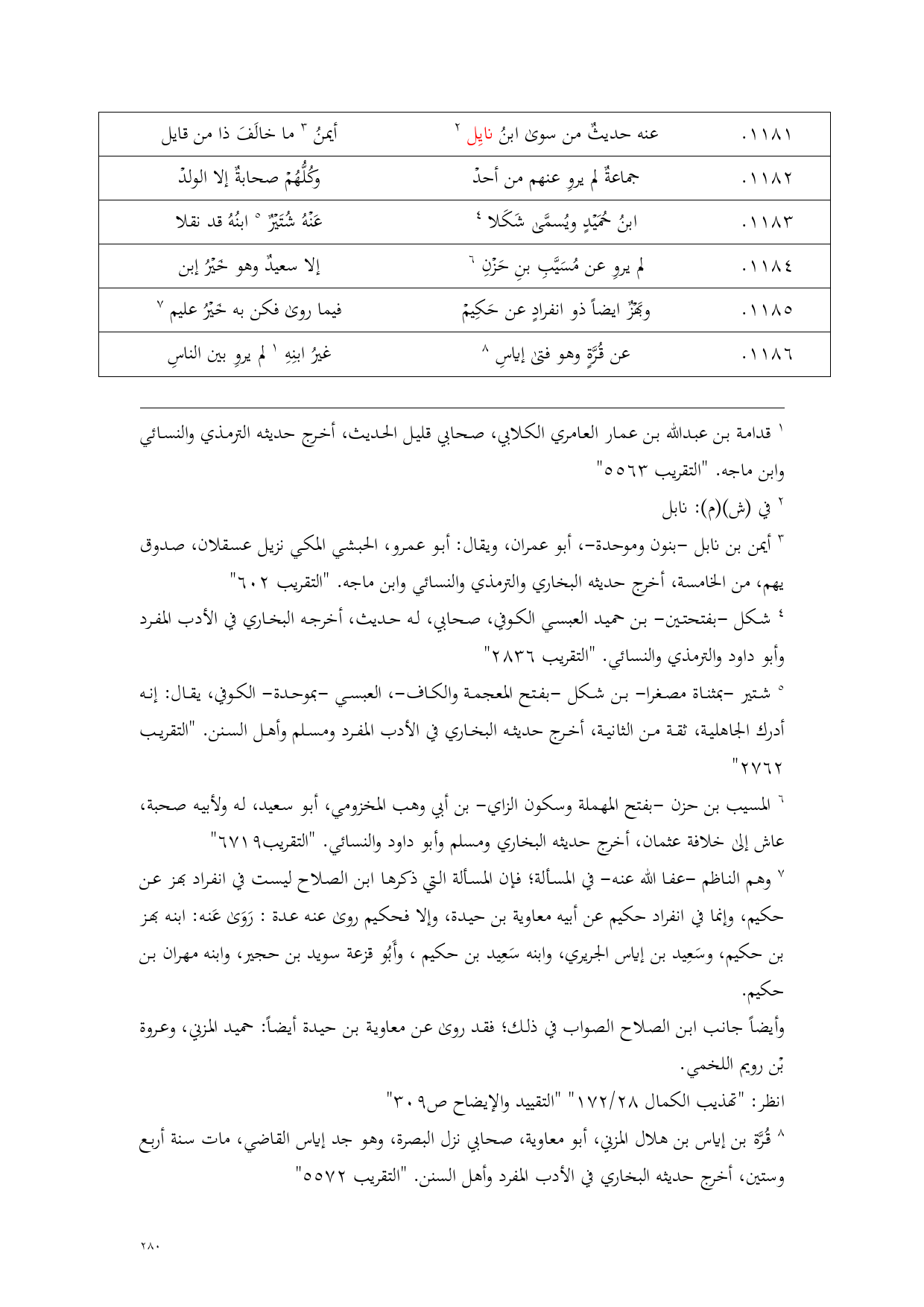 1186 - عن قُرَّةٍ وهو فتى إياسِ (¬7) ... غيرُ ابنِهِ (¬8) لم يروِ بين الناس