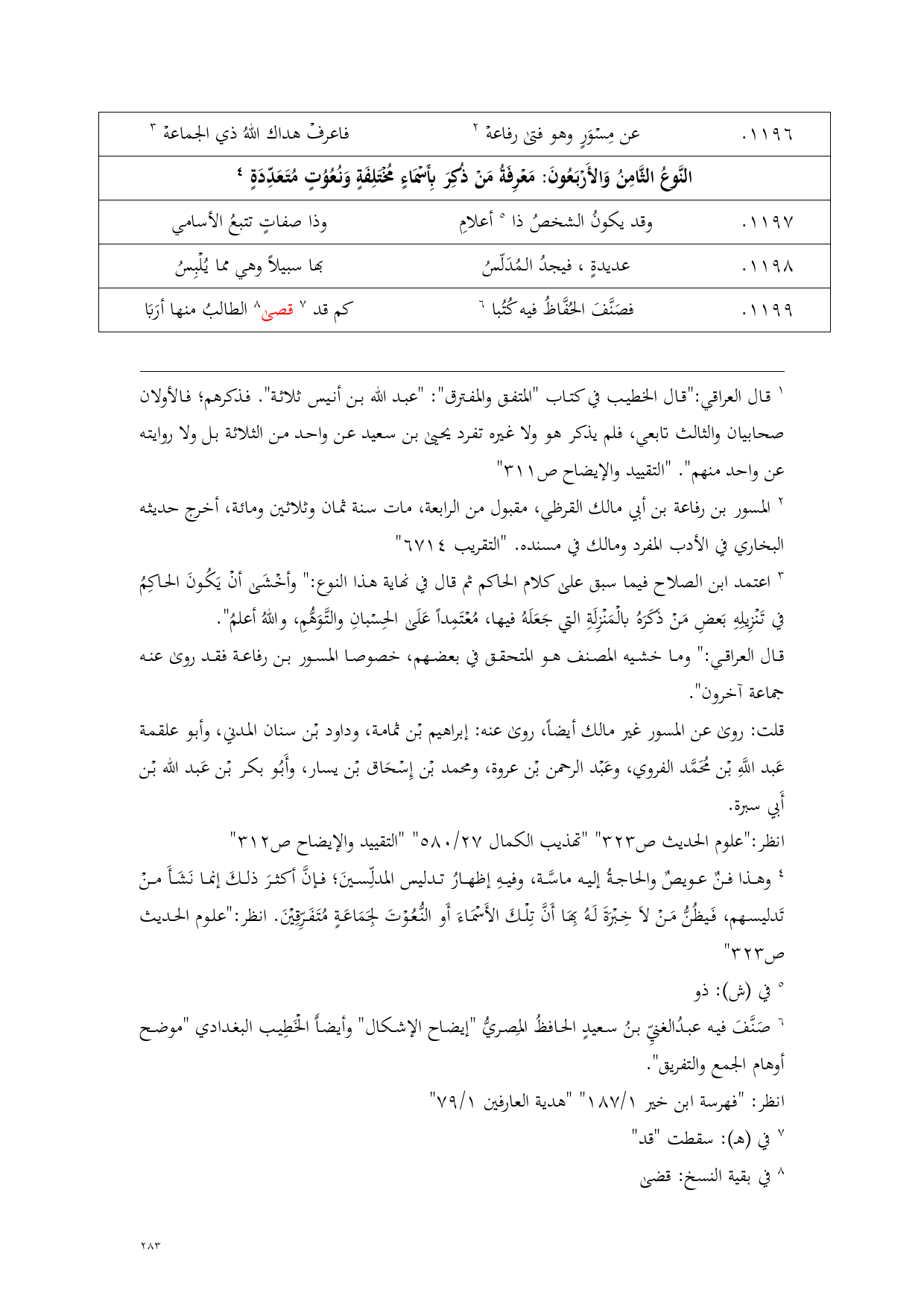 (¬2) اعتمد ابن الصلاح فيما سبق على كلام الحاكم ثم قال في نهاية هذا النوع: " وأخْشَى أنْ يَكُونَ الحاكِمُ في تَنْزِيلِهِ بَعضِ مَنْ ذَكَرَهُ بالْمَنْزِلَةِ التي جَعَلَهُ فيها، مُعْتَمِداً عَلَى الحِسْبانِ والتَّوَهُّمِ، واللهُ أعلمُ".