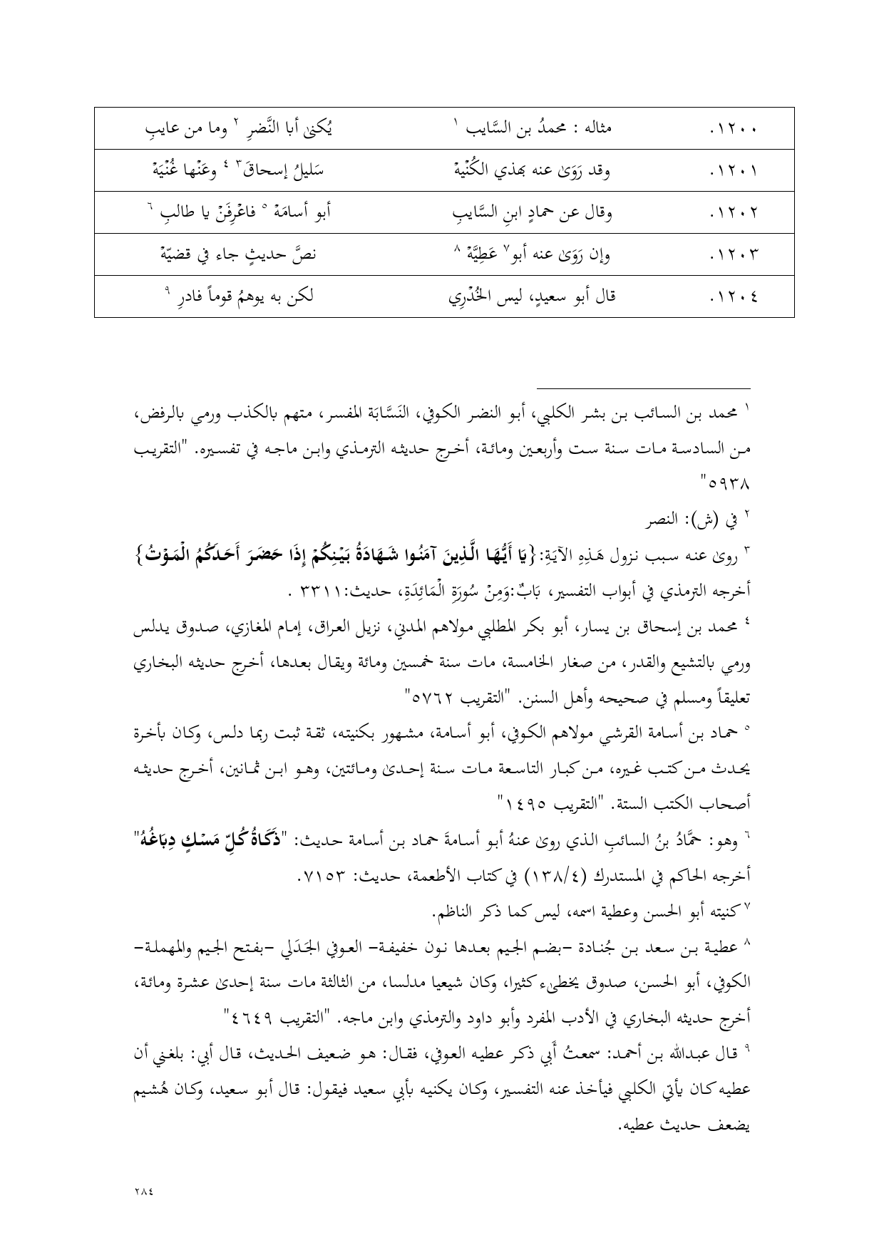 1200 - مثاله: محمدُ بن السَّايب (¬1) ... يُكنى أبا النَّضرِ (¬2) وما من عايب