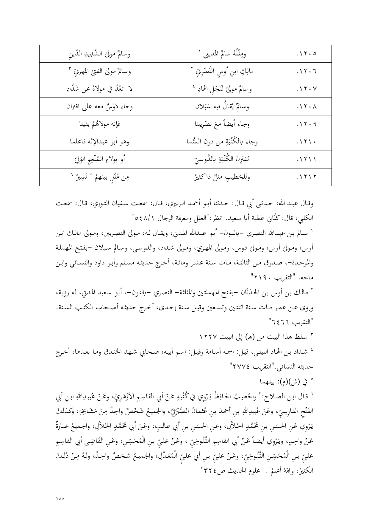 1206 - مالِكِ ابنِ أوسٍ النَّصْرِيِّ (¬2) ... وسالمٌ مولى الفتى المهريِّ (¬3)