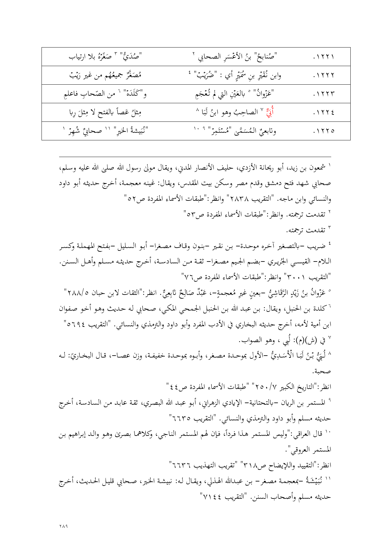 1225 - وتابعيٌ المُسَمَّى "مُسْتَمِرْ" (¬8) (¬9) ... "نُبَيشةُ الخيرِ" (¬10) صحابيٌ شُهِرْ (¬11)