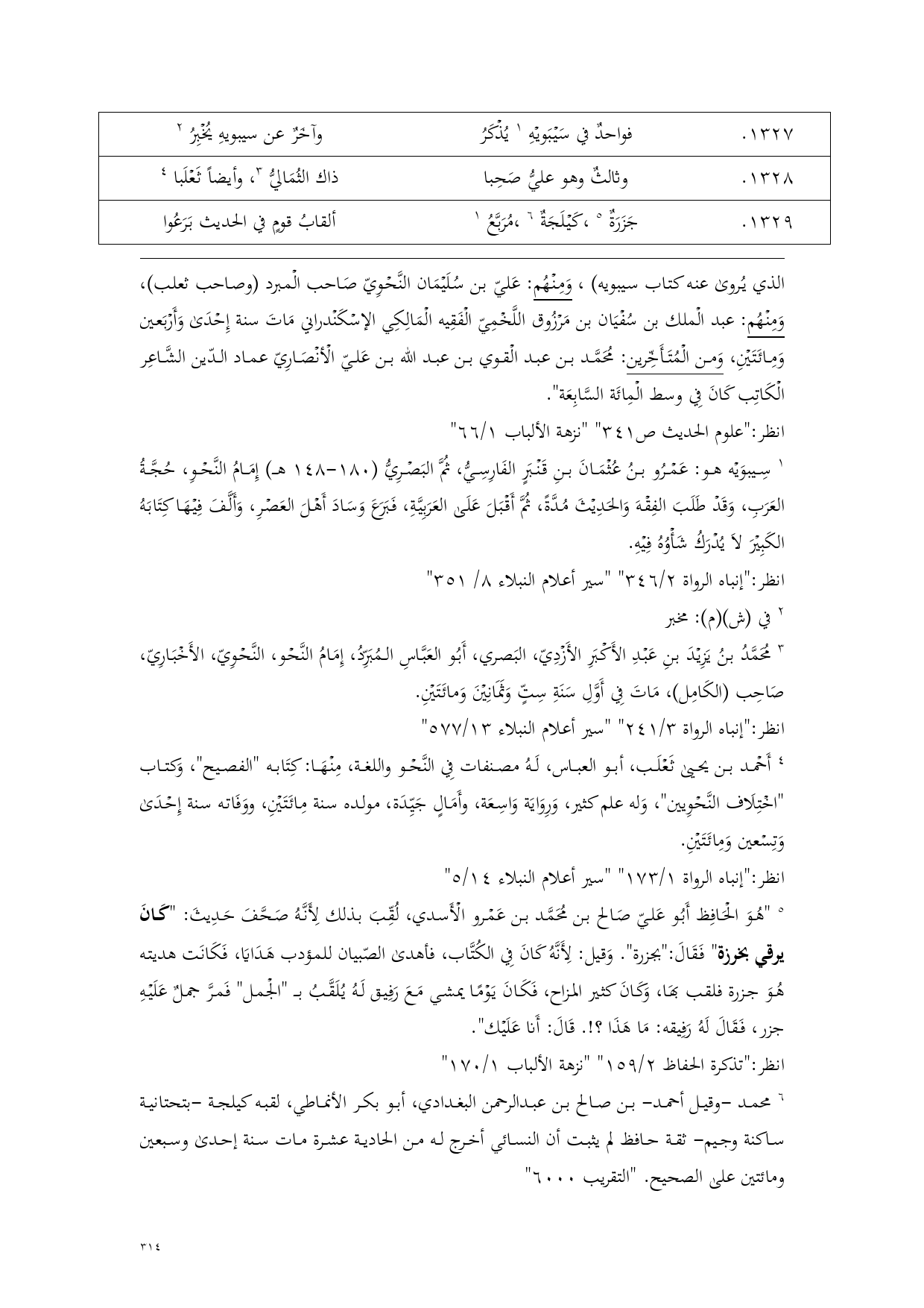 1329 - جَزَرَةٌ (¬5)، كَيْلَجَةٌ (¬6)، مُرَبَّعُ (¬7) ... ألقابُ قومٍ في الحديث بَرَعُوا