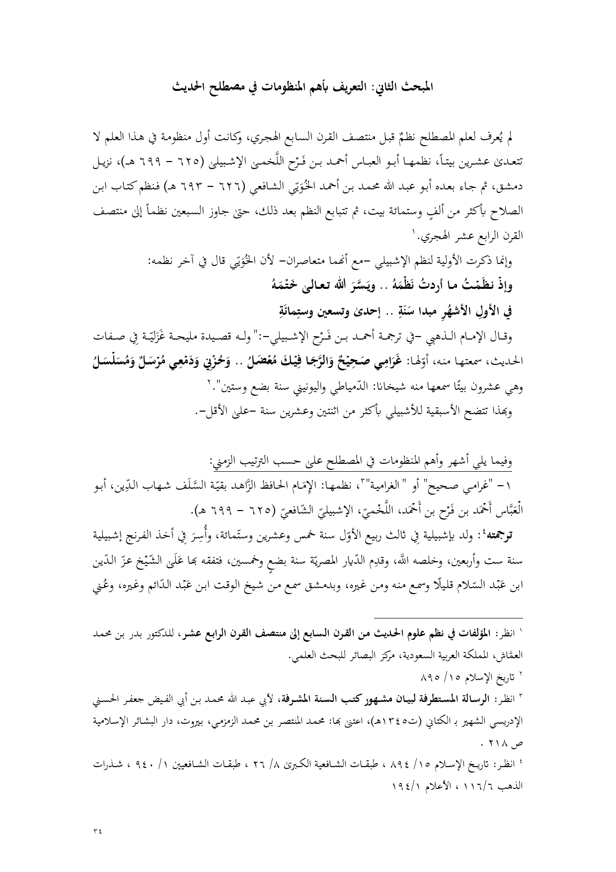 (¬1) انظر: المؤلفات في نظم علوم الحديث من القرن السابع إلى منتصف القرن الرابع عشر، للدكتور بدر بن محمد العمَّاش، المملكة العربية السعودية، مركز البصائر للبحث العلمي.