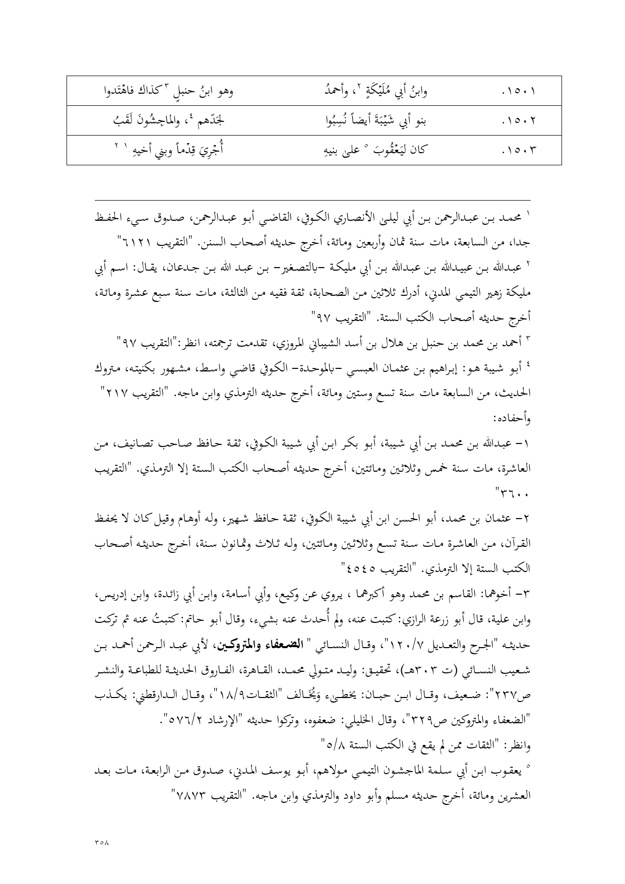 1501 - وابنُ أبي مُلَيْكَةٍ (¬1)، وأحمدُ ... وهو ابنُ حنبلٍ (¬2) كذاك فاهْتَدوا