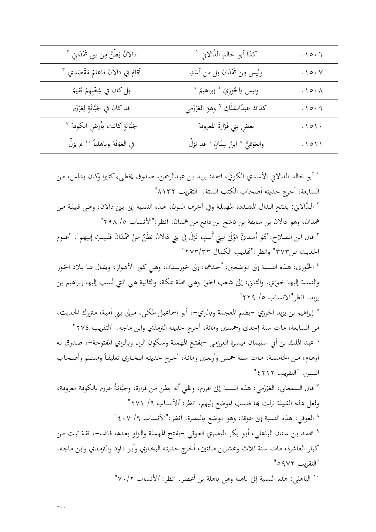 (¬3) قال ابن الصلاح: "هُوَ أسديٌّ مَوْلَى لبنِي أَسدٍ، نَزَلَ فِي بنِي دَالانَ بَطْنٌ منْ هَمْدَانَ فنُسِبَ إليهم". "علوم الحديث ص 373" وانظر: "تهذيب الكمال 33/ 273"