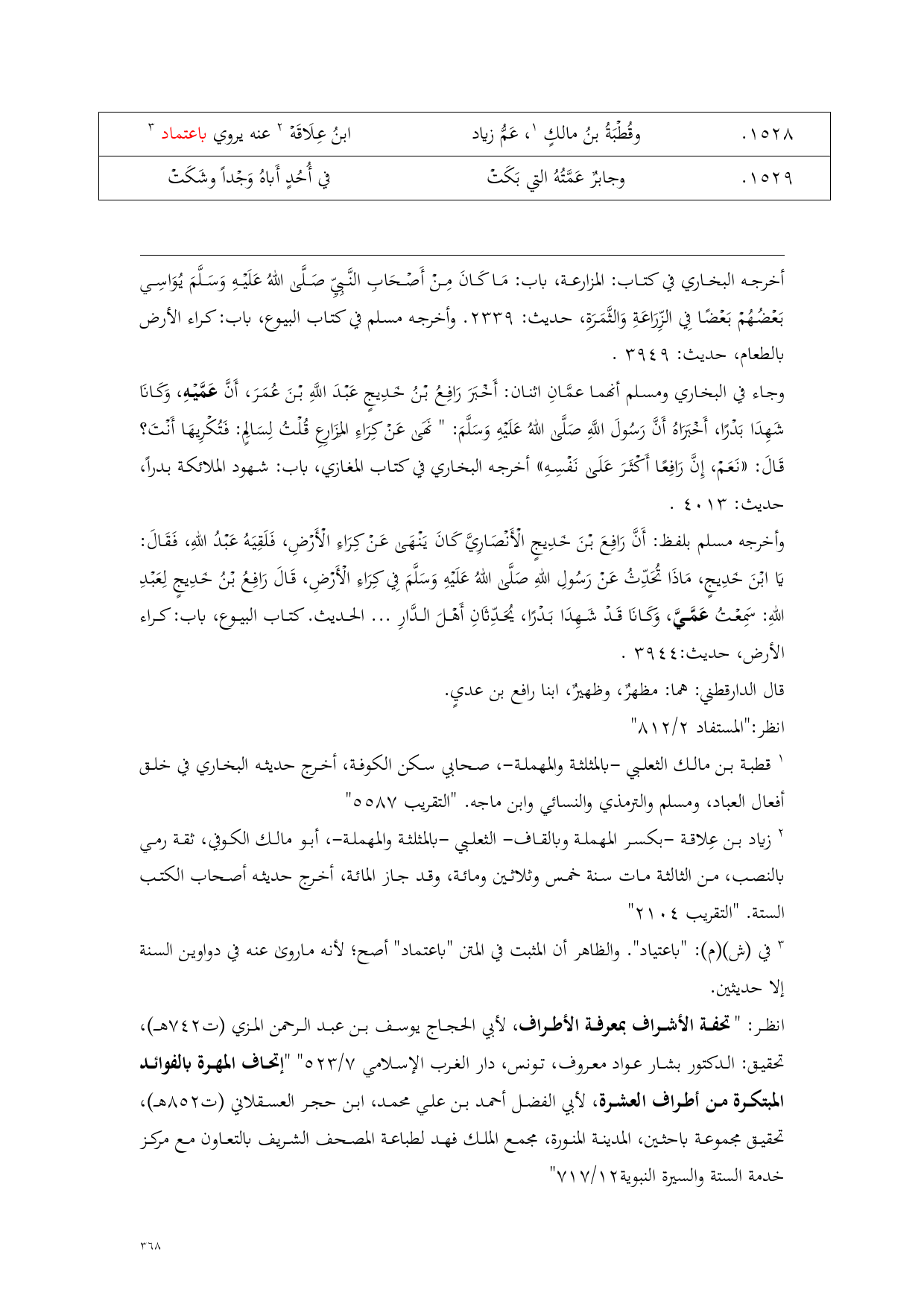 1528 - وقُطْبَةُ بنُ مالكٍ (¬1)، عَمُّ زياد ... ابنُ عِلَاقَهْ (¬2) عنه يروي باعتماد (¬3)