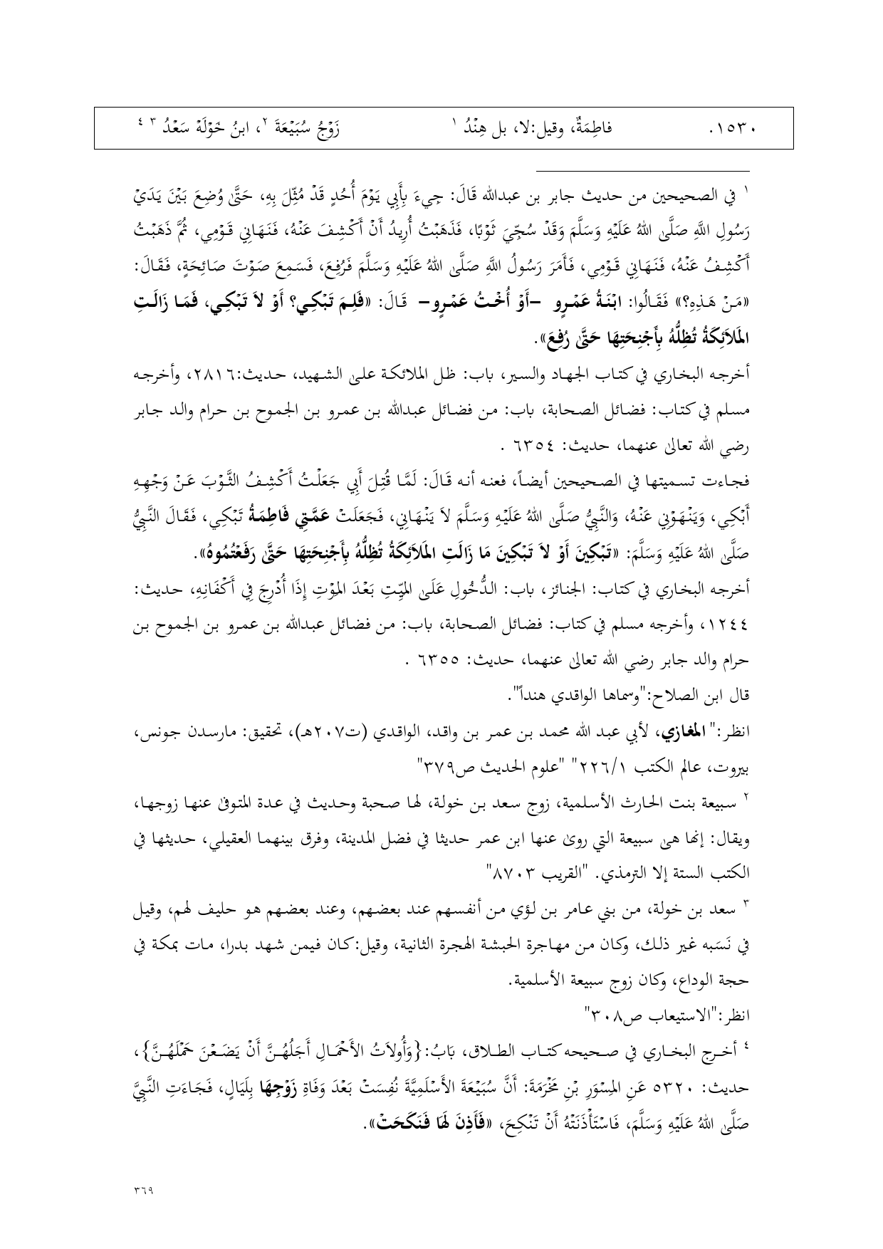 1530 - فاطِمَةٌ، وقيل: لا، بل هِنْدُ (¬1) ... زَوْجُ سُبَيْعَةَ (¬2)، ابنُ خَوْلَهْ سَعْدُ (¬3) (¬4)