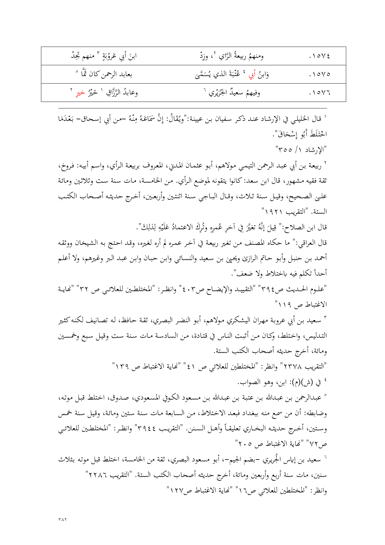1574 - ومنهمُ ربيعةُ الرَّاي (¬1)، وزِدْ ... ابنَ أبي عَروُبَةٍ (¬2) منهم تجِدْ