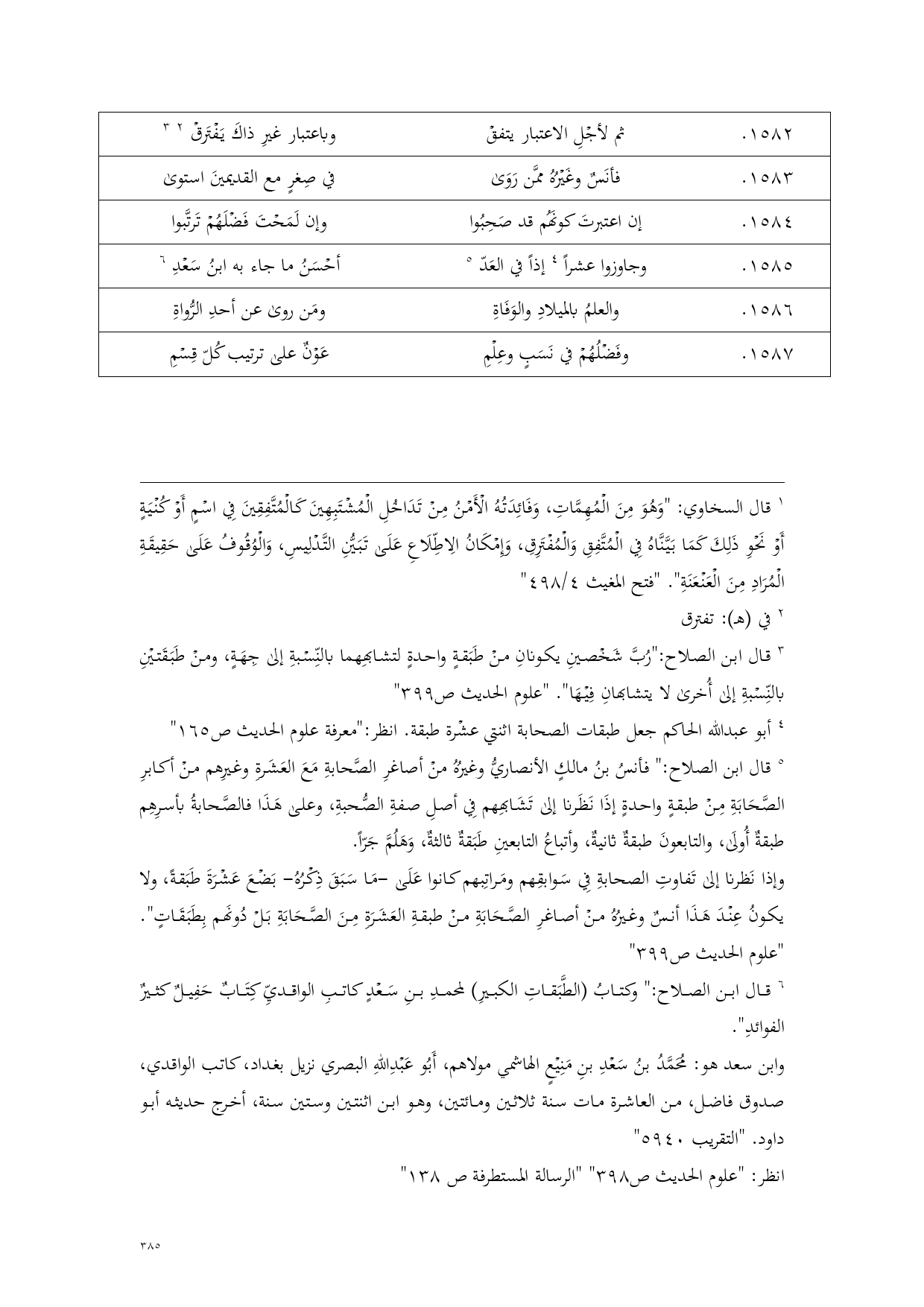 1585 - وجاوزوا عشراً (¬3) إذاً في العَدّ (¬4) ... أحْسَنُ ما جاء به ابنُ سَعْدِ (¬5)