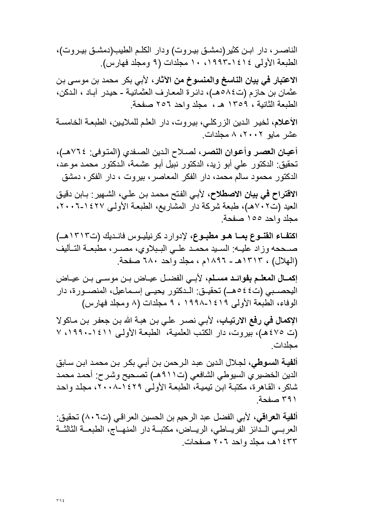 الاعتبار في بيان الناسخ والمنسوخ من الآثار، لأبي بكر محمد بن موسى بن عثمان بن حازم (ت 584 هـ)، دائرة المعارف العثمانية - حيدر آباد، الدكن، الطبعة الثانية، 1359 هـ، مجلد واحد 256 صفحة.